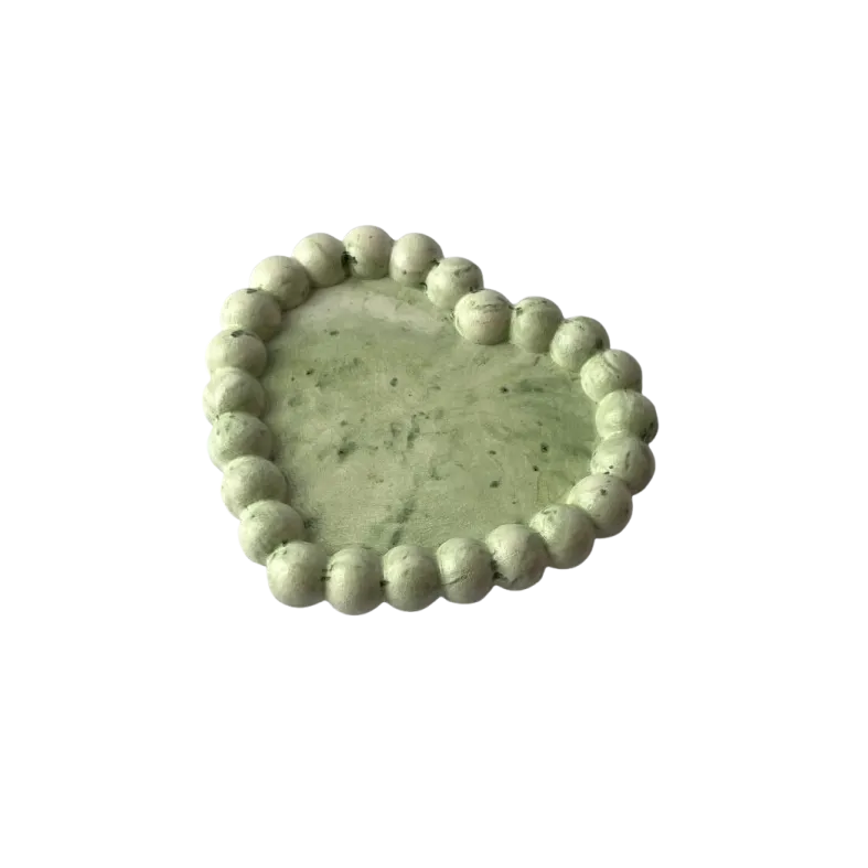 Adauga un plus de eleganta si stil decorului tau cu aceasta tavita realizata manual din ciment.Cu un design inedit in forma de inima si margini conturate cu bile , acest obiect versatil poate fi folosit ca suport pentru lumanari , bijuterii , chei sau alte accesorii mici .