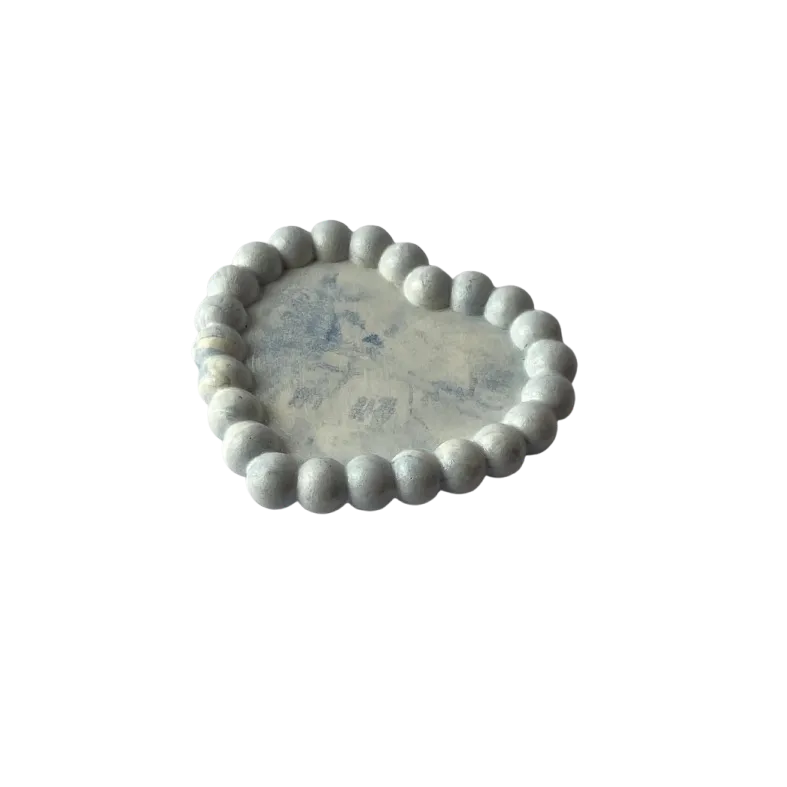 Adauga un plus de eleganta si stil decorului tau cu aceasta tavita realizata manual din ciment.Cu un design inedit in forma de inima si margini conturate cu bile , acest obiect versatil poate fi folosit ca suport pentru lumanari , bijuterii , chei sau alte accesorii mici .