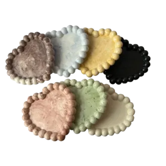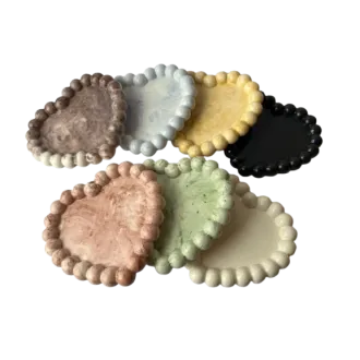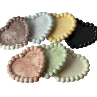 Tavita decorativa din ciment , forma de inima  Adauga un plus de eleganta si stil decorului tau cu aceasta tavita realizata manual din ciment.Cu un design inedit in forma de inima si margini conturate cu bile , acest obiect versatil poate fi folosit ca suport pentru lumanari , bijuterii , chei sau alte accesorii mici . Materiel -  ciment durabil  Design -  modern , minimalist