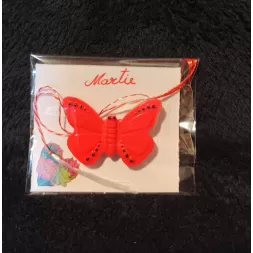 Martisor brosa capsunica pictat manual si facut din ceramica.