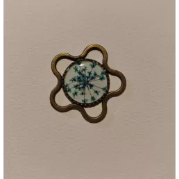 Martisor brosa cu floricele naturale presate si rasina epoxidica.