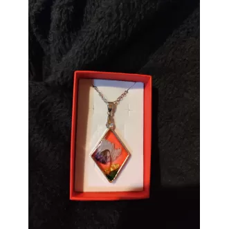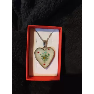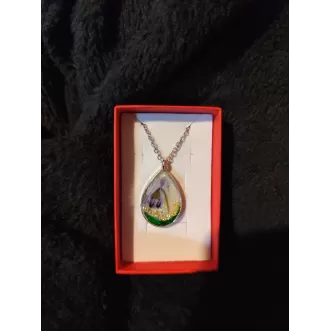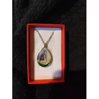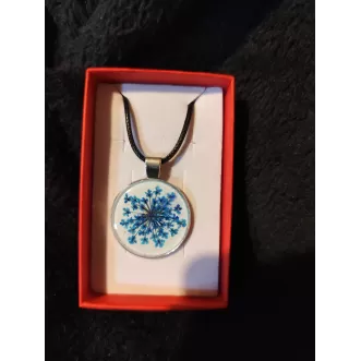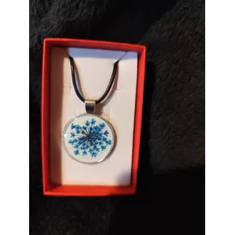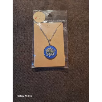 Pandantiv realizat cu flori presate si rasina epoxidica. Dimensiune lant: 45-50cm