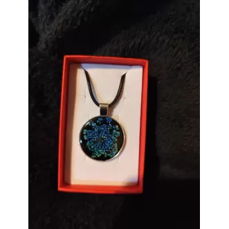 Pandativ lucrat manual cu flori presate si rasina epoxidica.Vine la pachet cu cutie cadou si colier negru.
