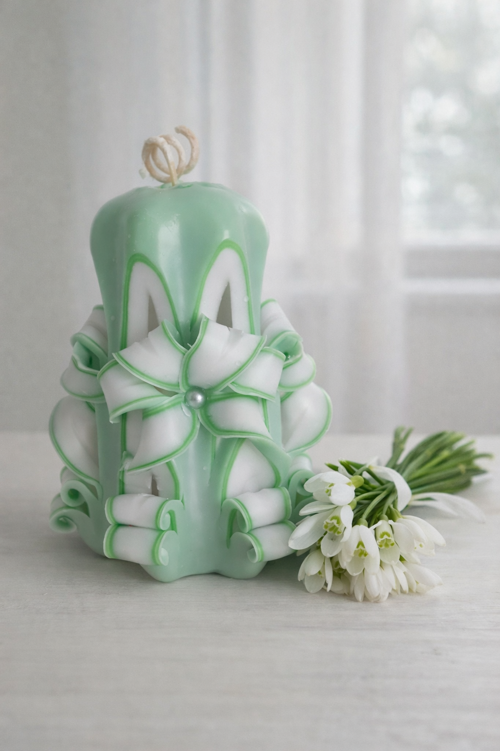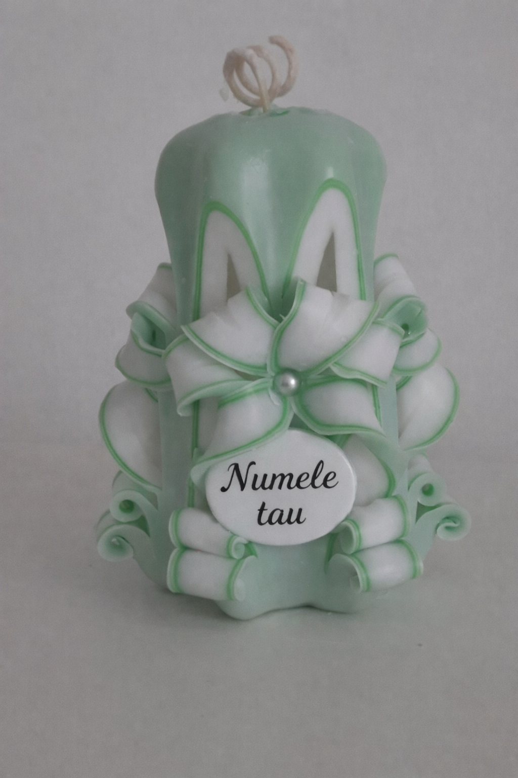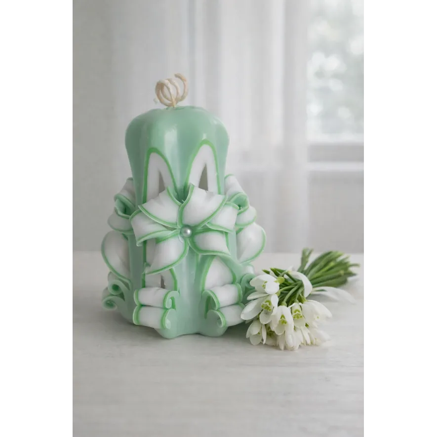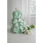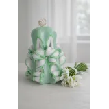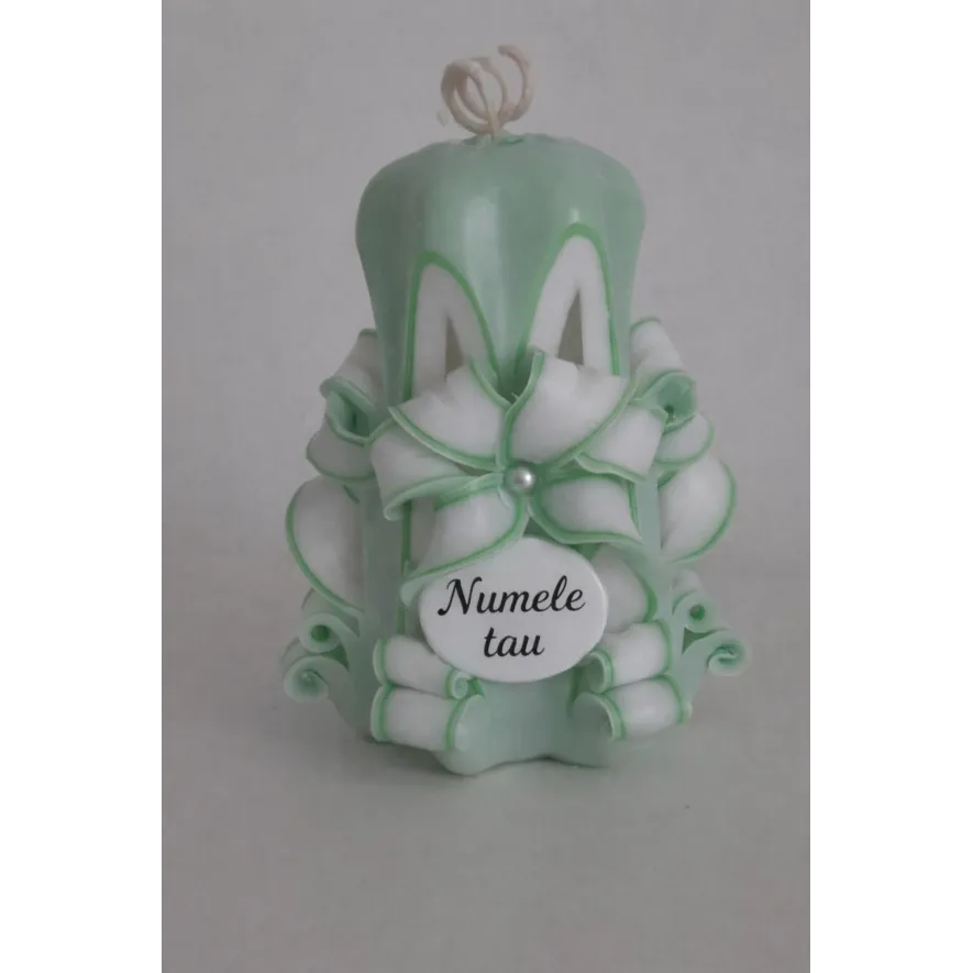 Lumanare sculptata mica, 10 cm, culoare verde - alb