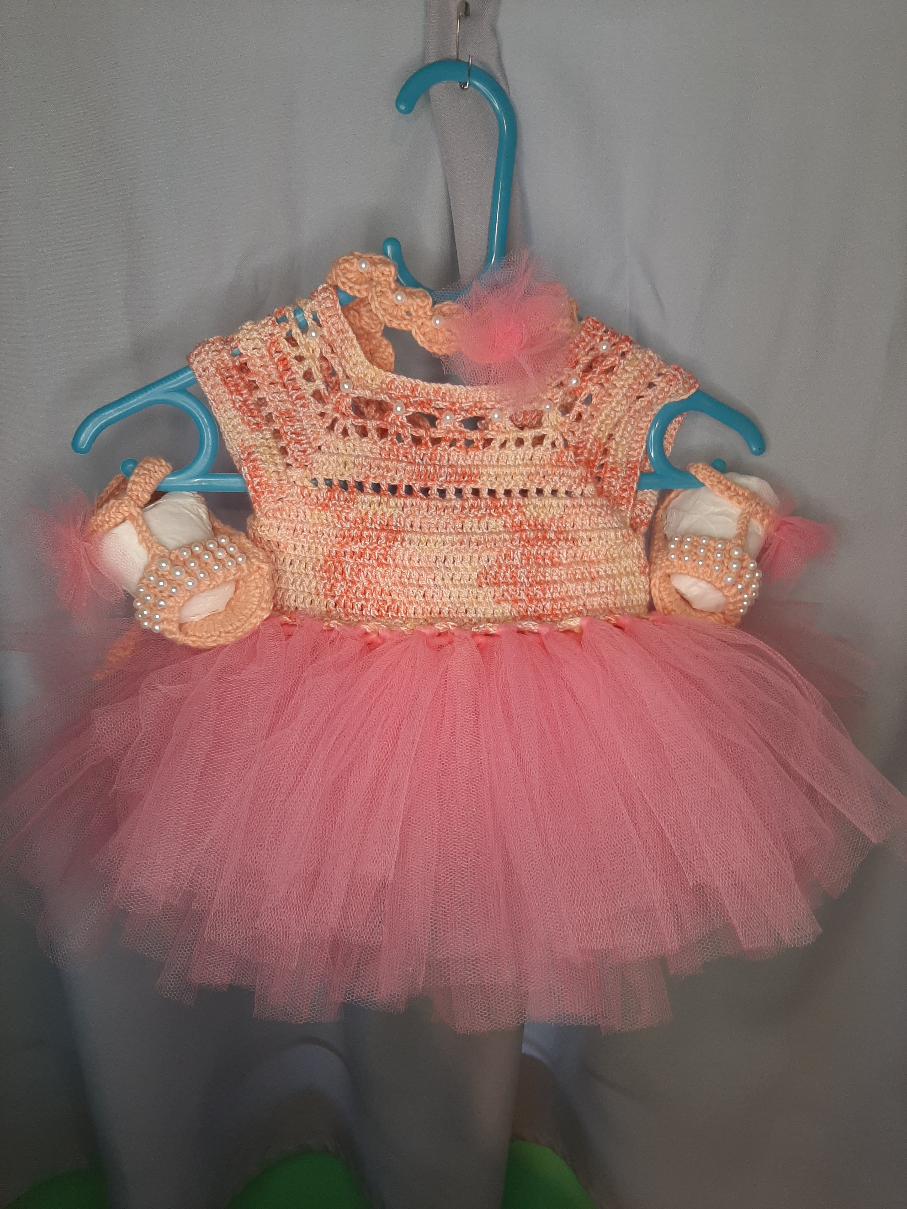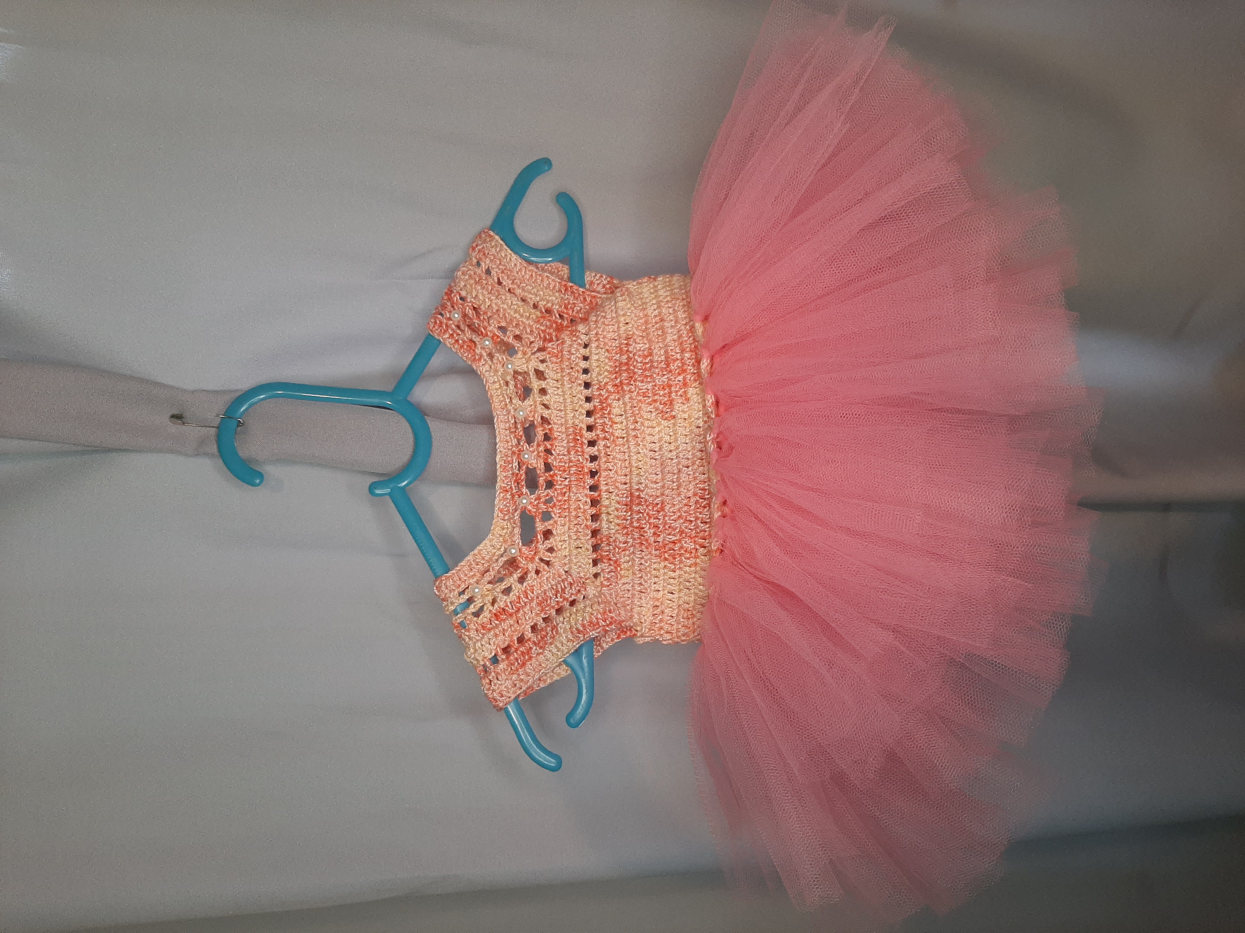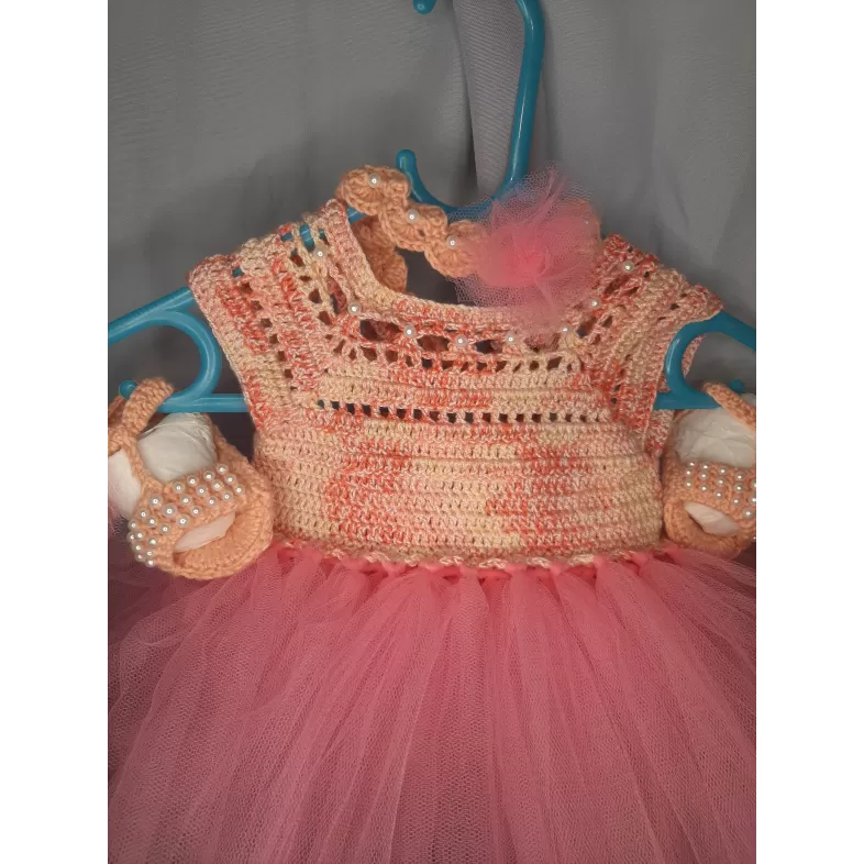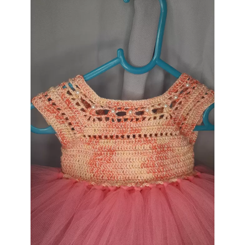 Rochița pentru bebeluși, croșetată, este o piesă delicată și adorabilă, ideală pentru micuțele doamne. Realizată dintr-un fir moale și confortabil, aceasta oferă atât stil, cât și lejeritate. Detaliile din tull adaugă un aer jucăuș și elegant, completând perfect designul rochiței. Perfectă pentru ocazii speciale sau pentru sesiunile de fotografii, această rochiță va face fiecare moment cu bebelușa să fie memorabil! Ușor de îmbrăcat și confortabil de purtat, este alegerea ideală pentru sezonul cald.