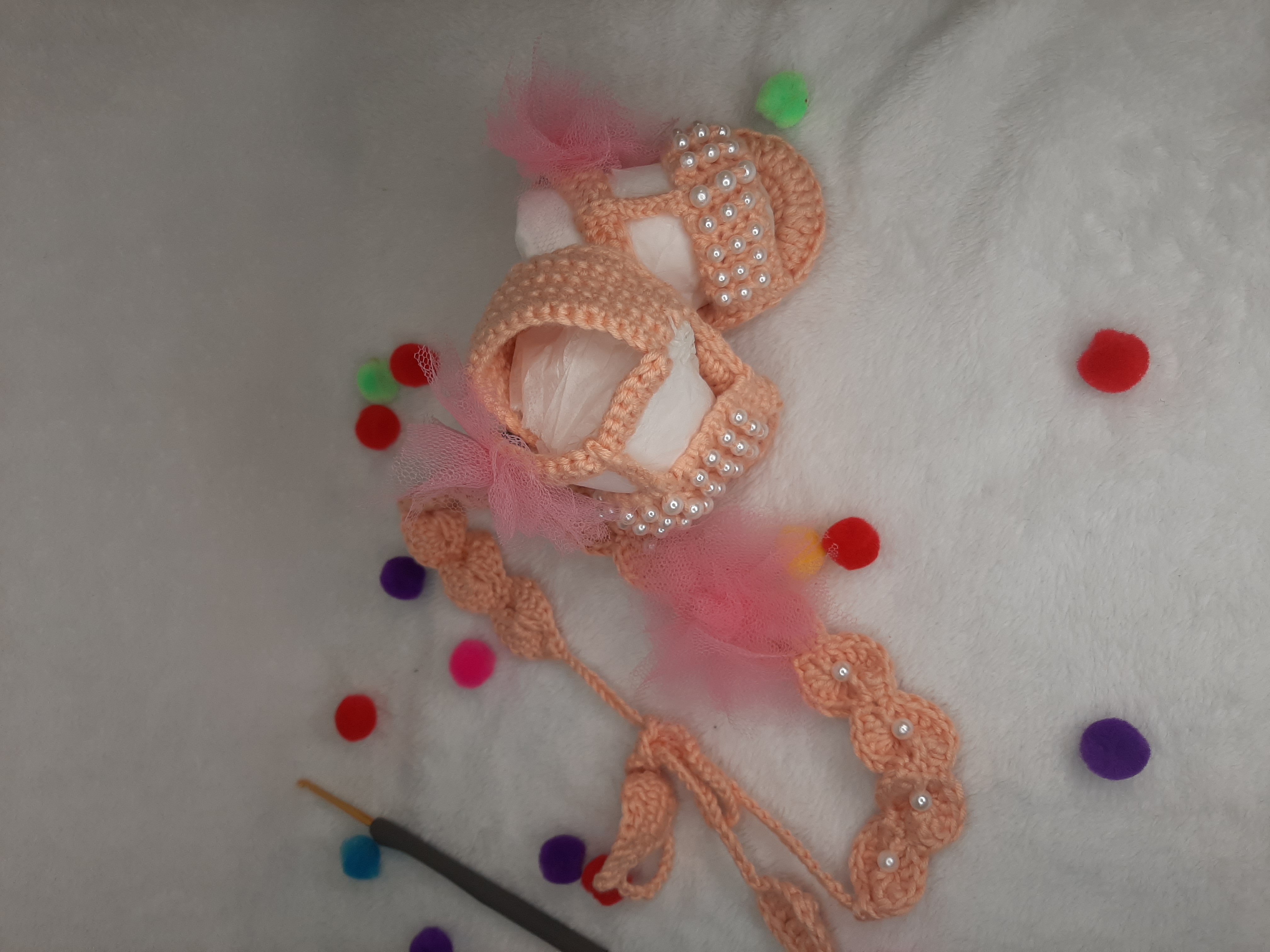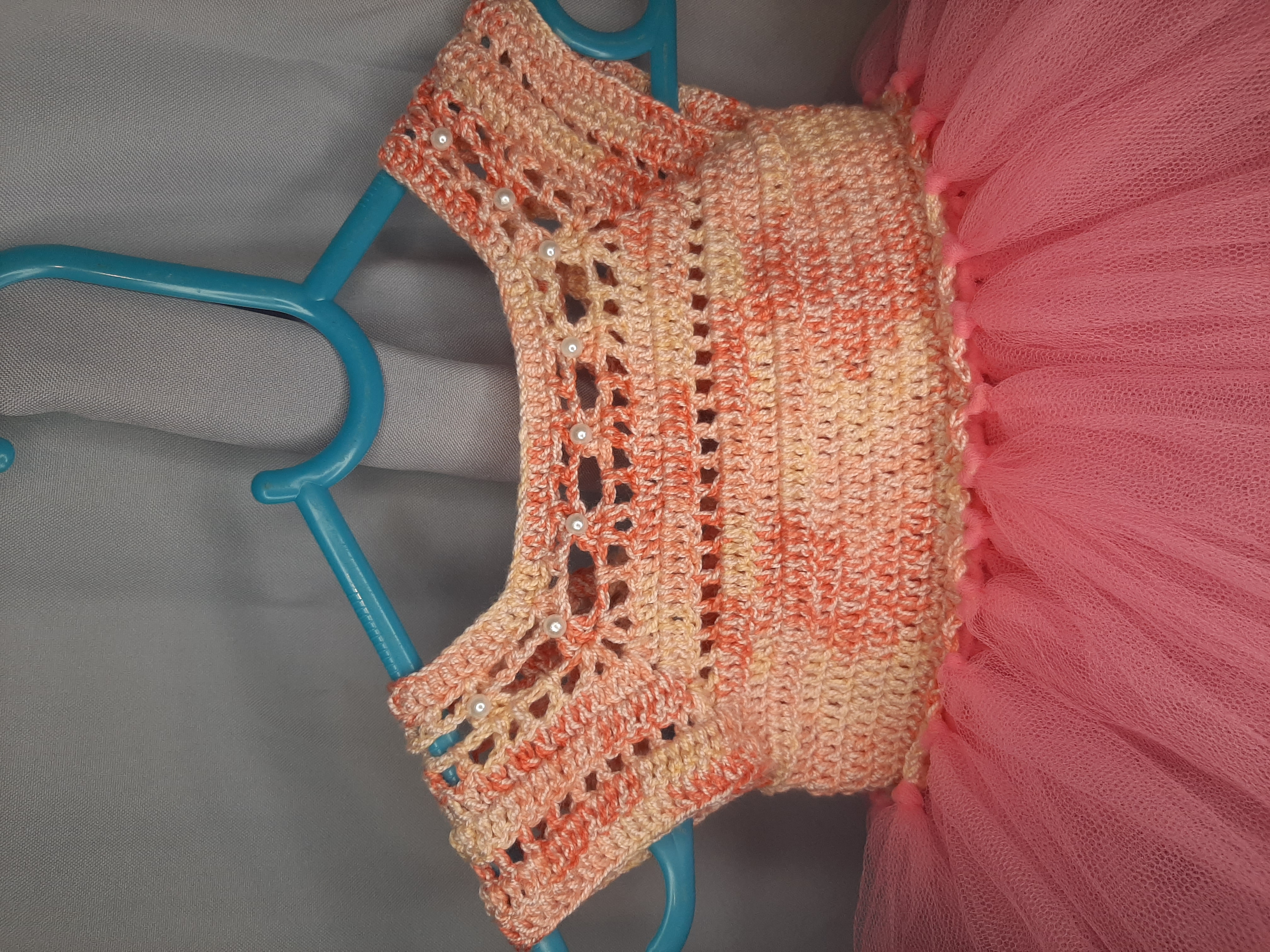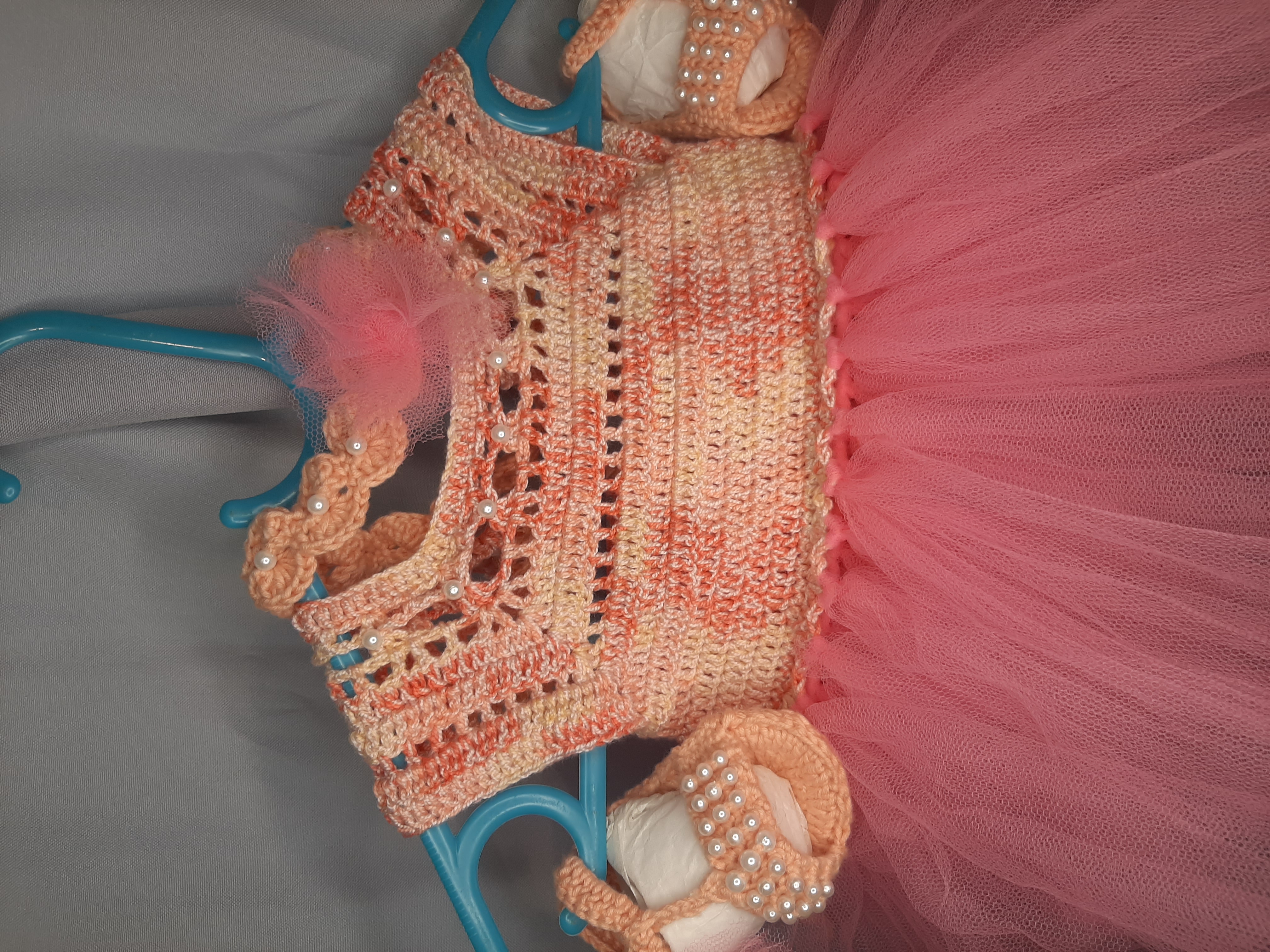 Rochița pentru bebeluși, croșetată, este o piesă delicată și adorabilă, ideală pentru micuțele doamne. Realizată dintr-un fir moale și confortabil, aceasta oferă atât stil, cât și lejeritate. Detaliile din tull adaugă un aer jucăuș și elegant, completând perfect designul rochiței. Perfectă pentru ocazii speciale sau pentru sesiunile de fotografii, această rochiță va face fiecare moment cu bebelușa să fie memorabil! Ușor de îmbrăcat și confortabil de purtat, este alegerea ideală pentru sezonul cald.
