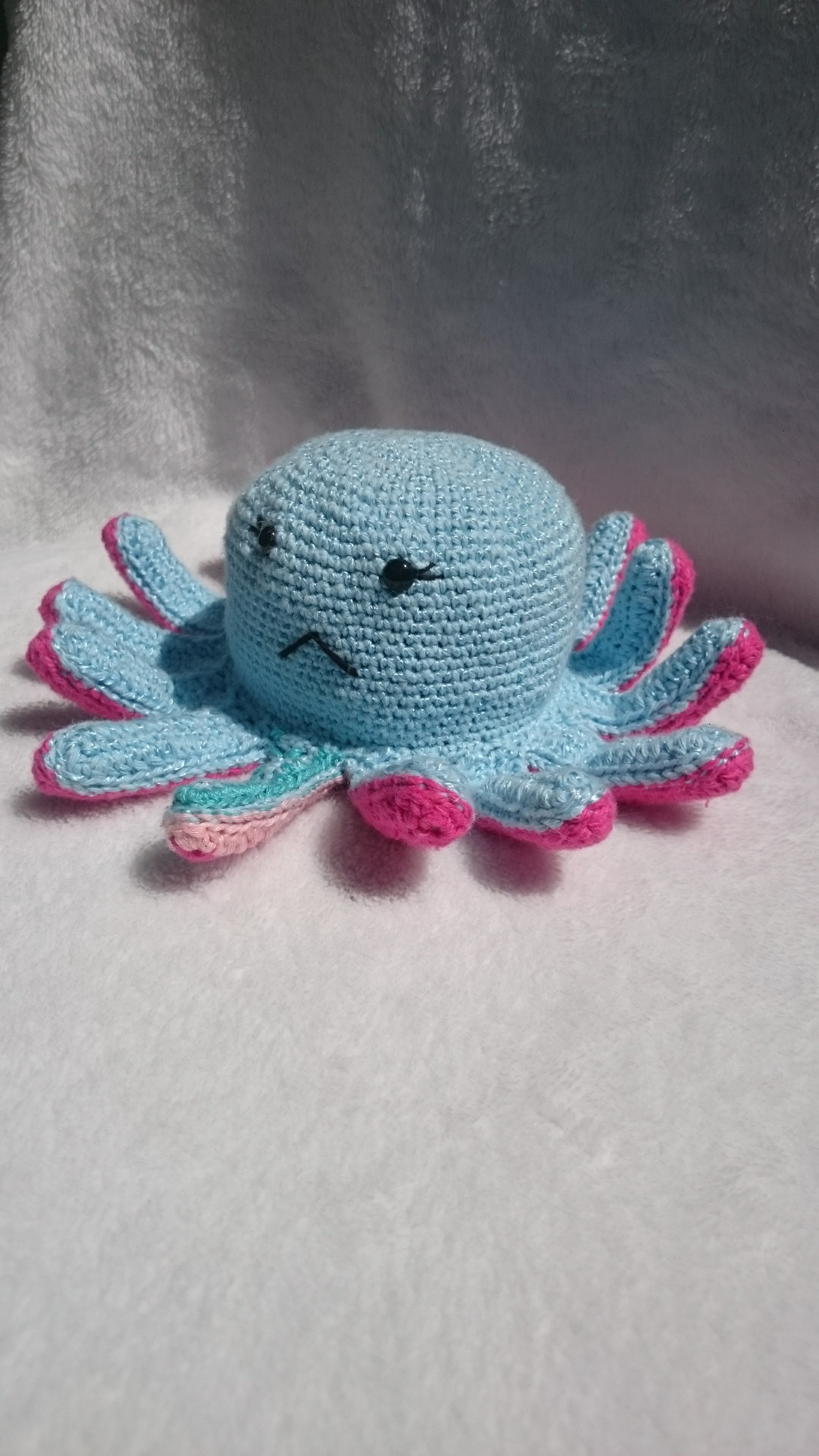 Caracatița reversibilă croșetată este o jucărie jucăușă și interactivă, perfectă pentru a aduce un zâmbet pe chip. Are un design ingenios care permite transformarea dintr-o caracatiță veselă, cu culori vibrante, în una supărată, cu tonuri mai închise. Realizată din fir moale și plăcut la atingere, această caracatiță nu doar că este perfectă pentru joacă, dar oferă și o modalitate distractivă de a exprima emoții. Un companion ideal pentru copii și nu numai!