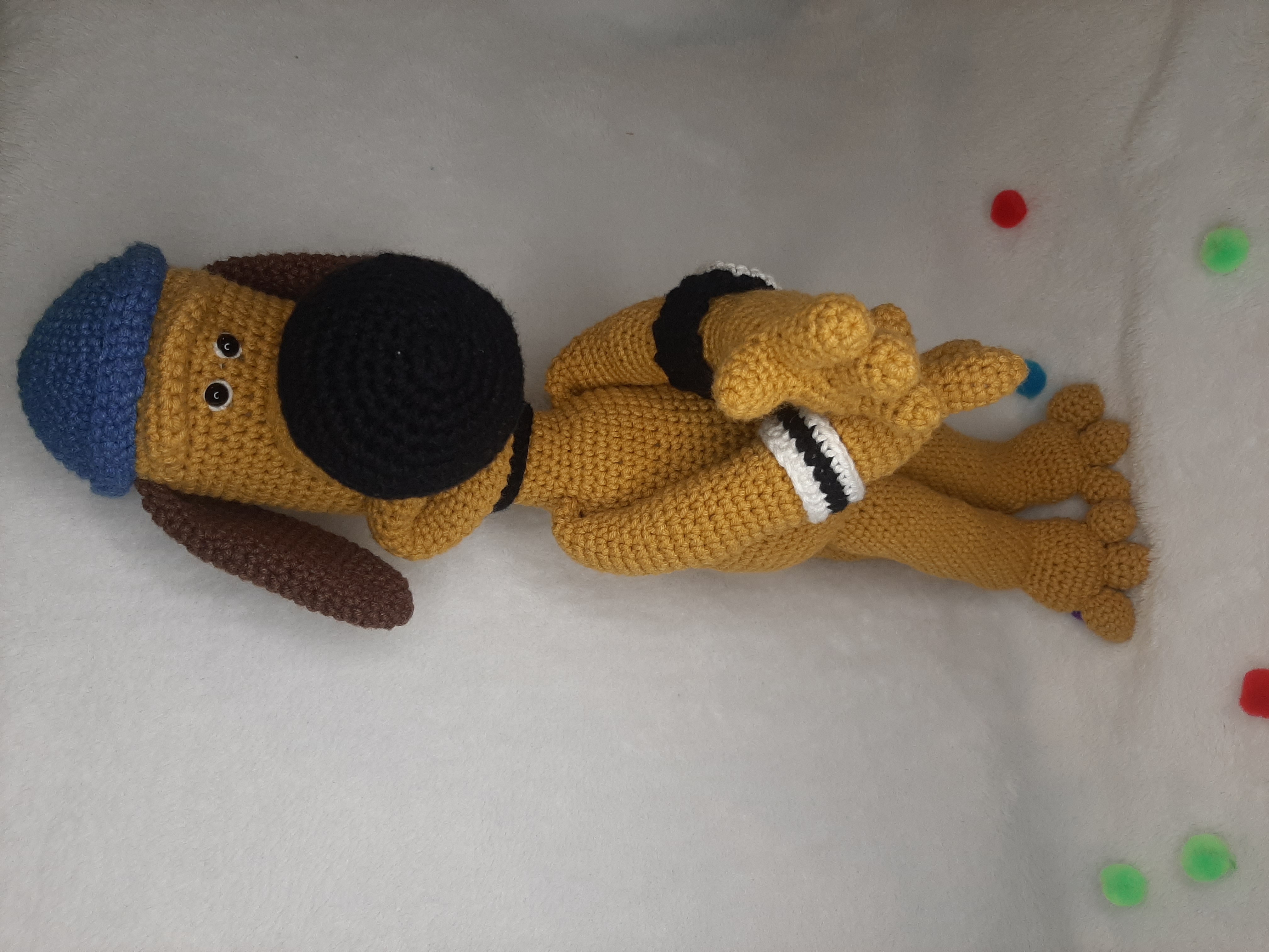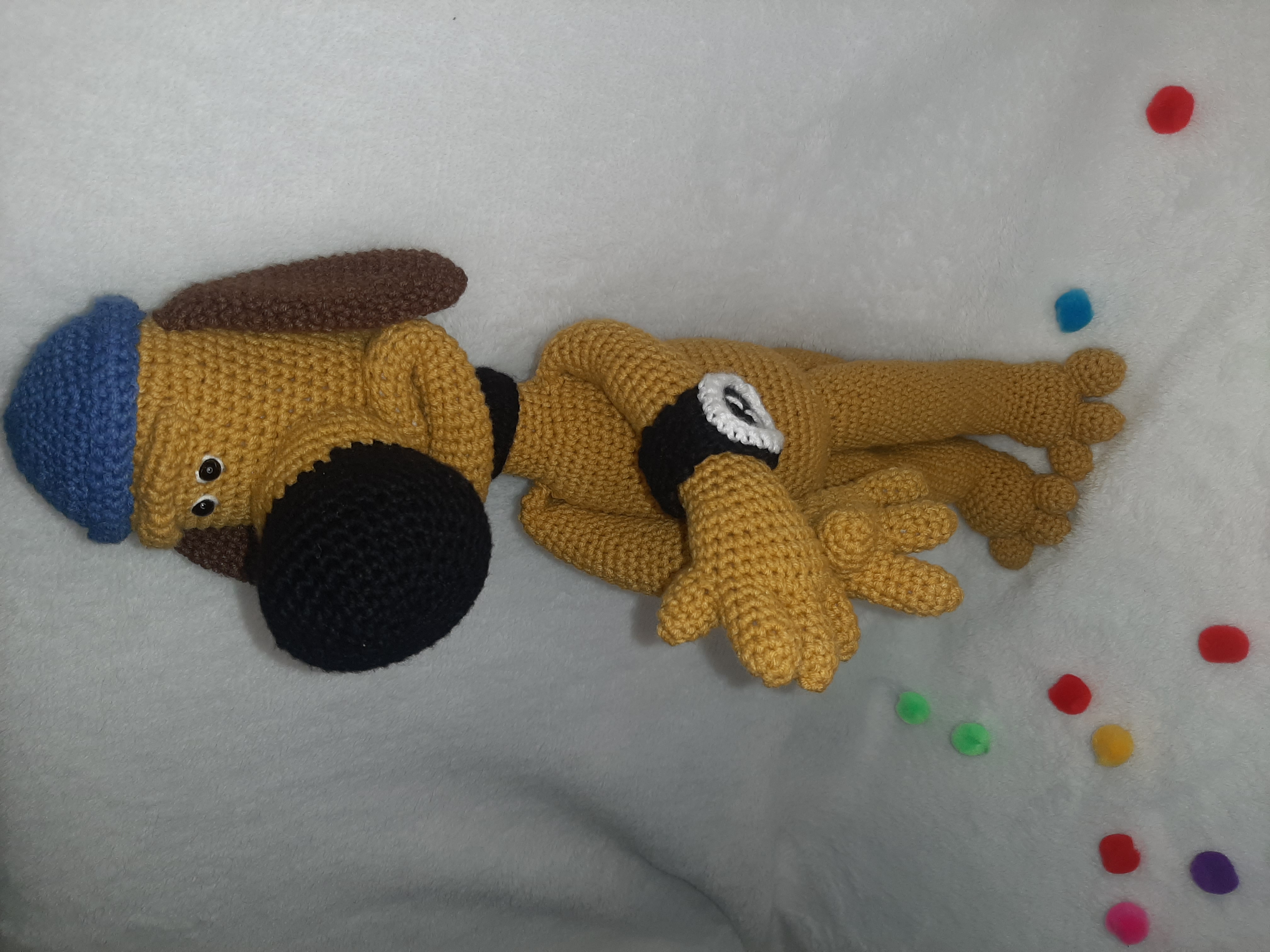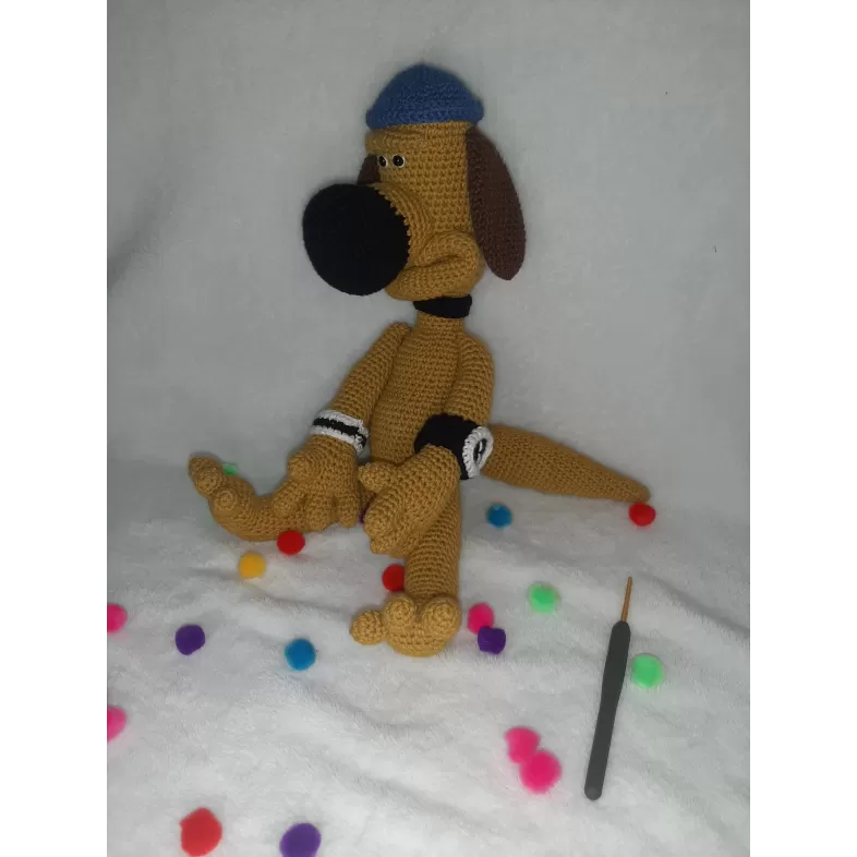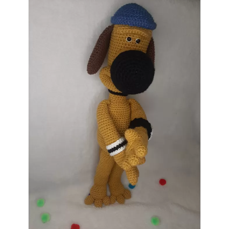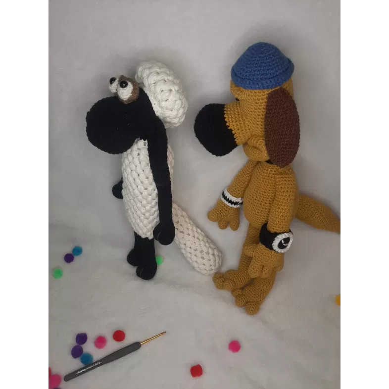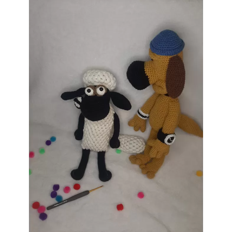 Cățelul croșetat inspirat din desenele animate "Shaun The Sheep" este o jucărie adorabilă, plină de personalitate. Cu blănița sa moale și detalii atent lucrate, precum urechile căzute și ochii expresivi, acest cățel transmite un aer jucăuș și prietenos. Ideal pentru micii fani ai desenului animat, cățelul aduce bucurie și un strop de magie în fiecare joacă!