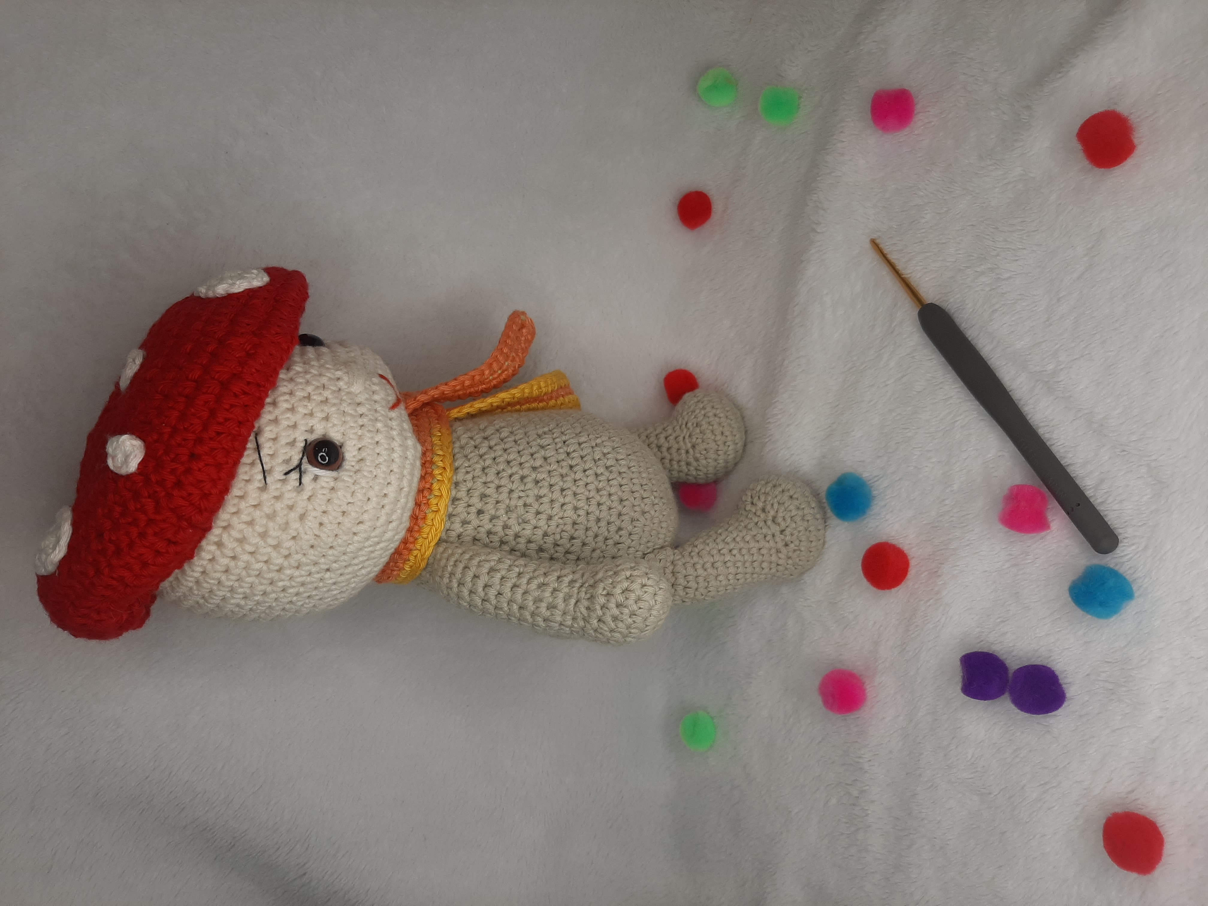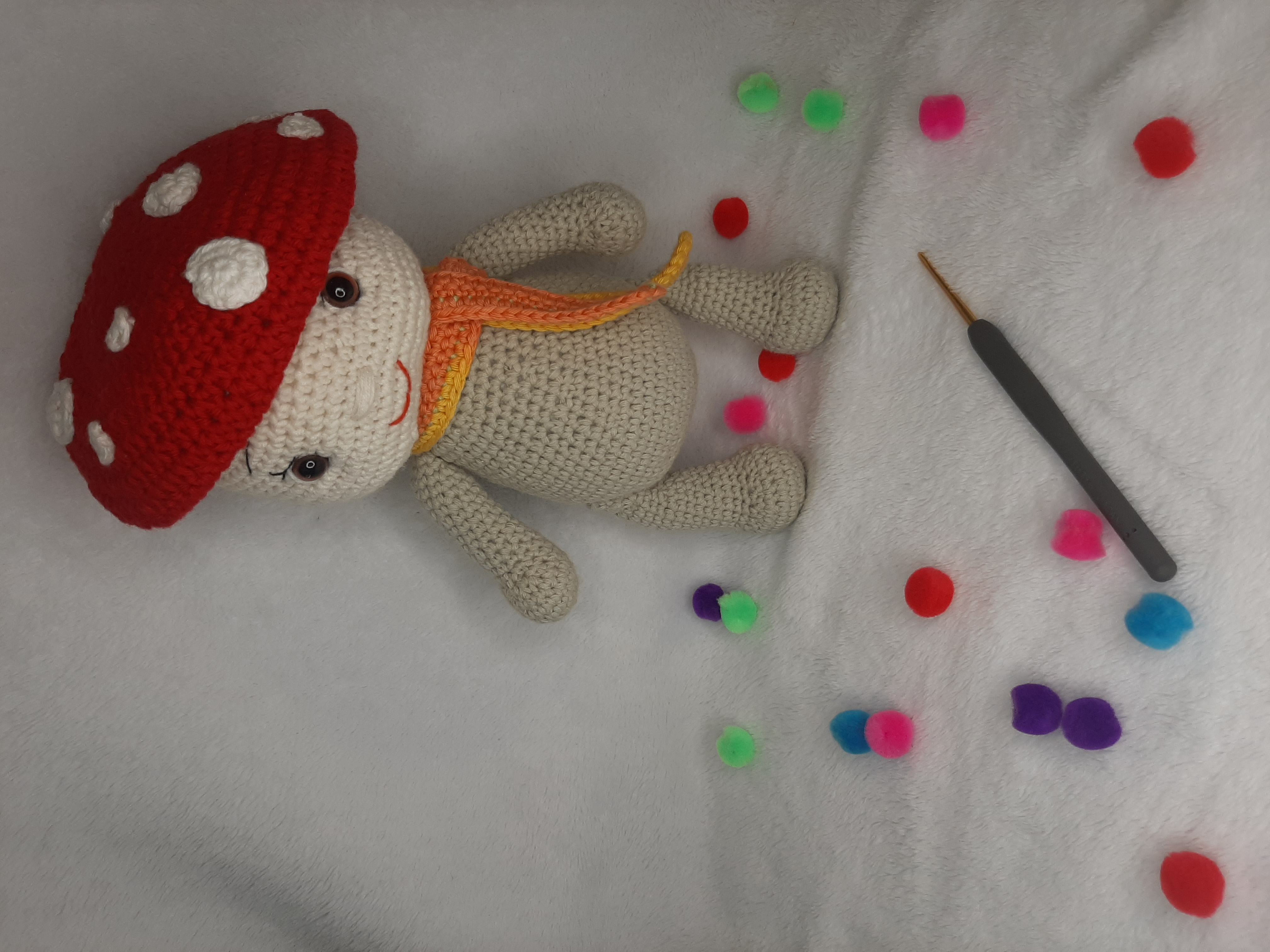 Ciupercuța croșetată este o jucărie adorabilă, realizată manual din fire moi și colorate. Cu un design simpatic și detalii atent lucrate, aceasta aduce un strop de veselie și fantaisie. Perfectă pentru îmbrățișări, este ideală atât pentru copii, cât și ca obiect decorativ în orice spațiu.