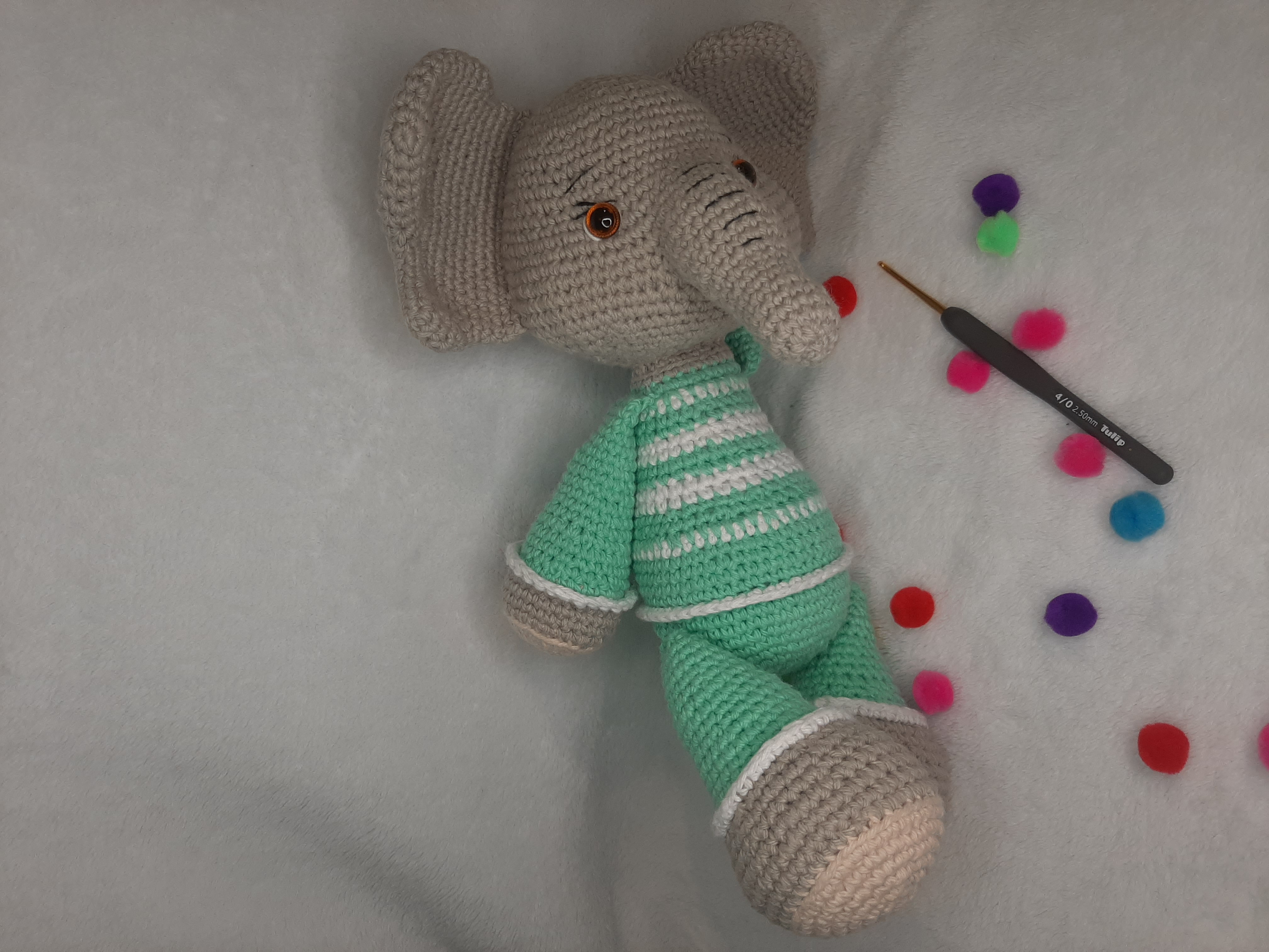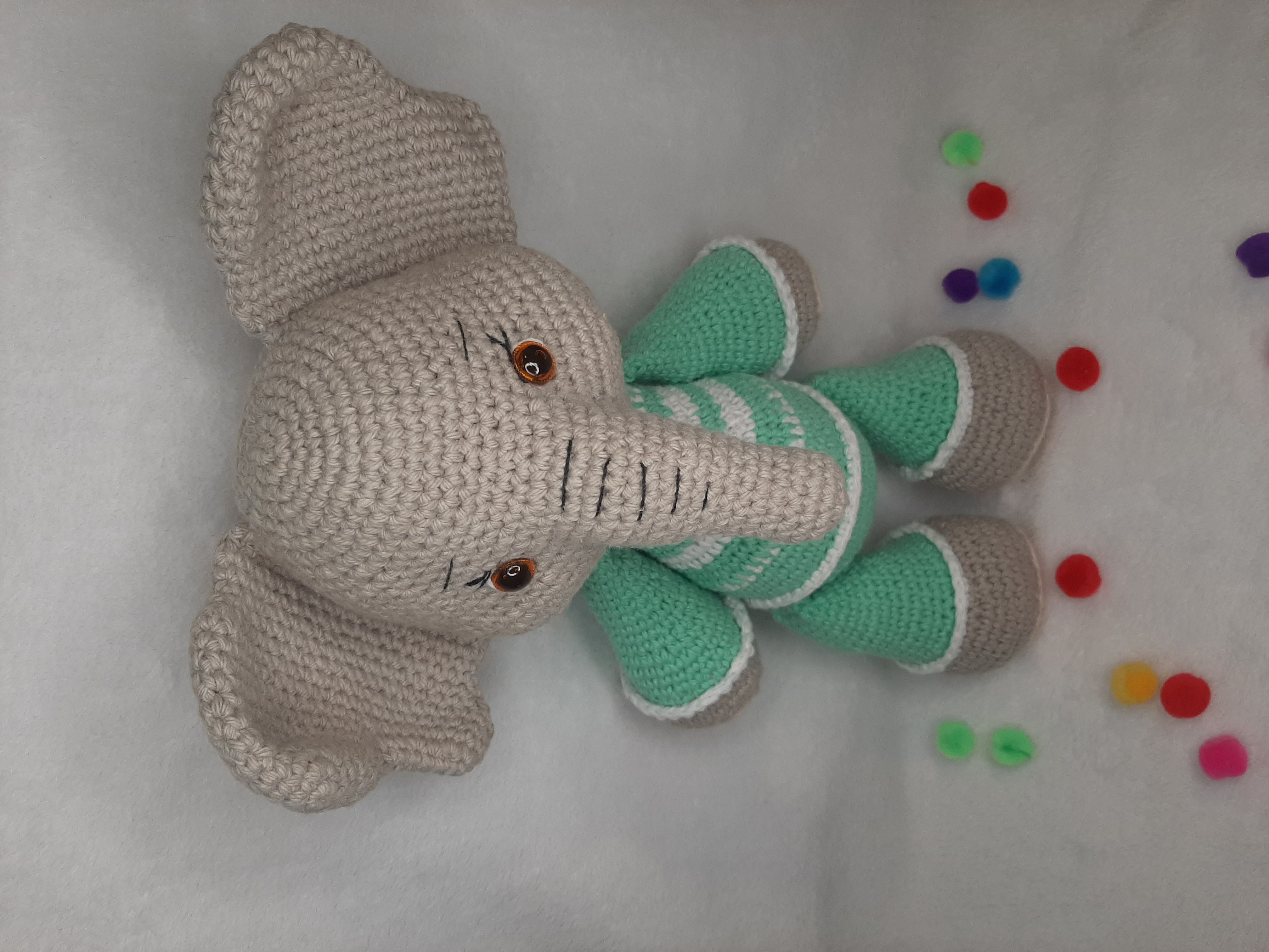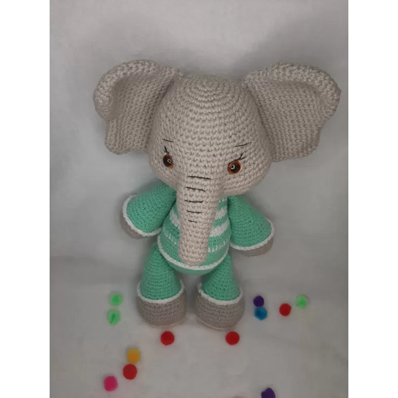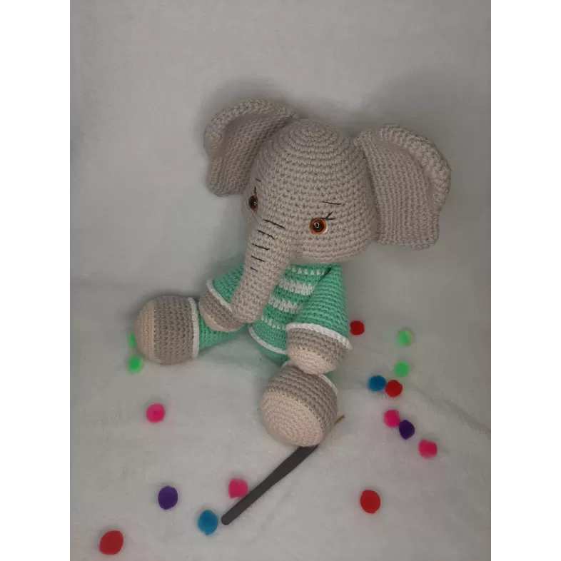 Acest elefant croșetat aduce un strop de veselie și căldură! Realizat din fire moi, este perfect pentru îmbrățișări, având o structură prietenoasă și detalii adorabile, cum ar fi urechile mari și trompa jucăușă. Dimensiunea sa compactă îl face ideal ca jucărie de pluș sau decor rustic pentru cameră. Un companion minunat pentru toate vârstele!