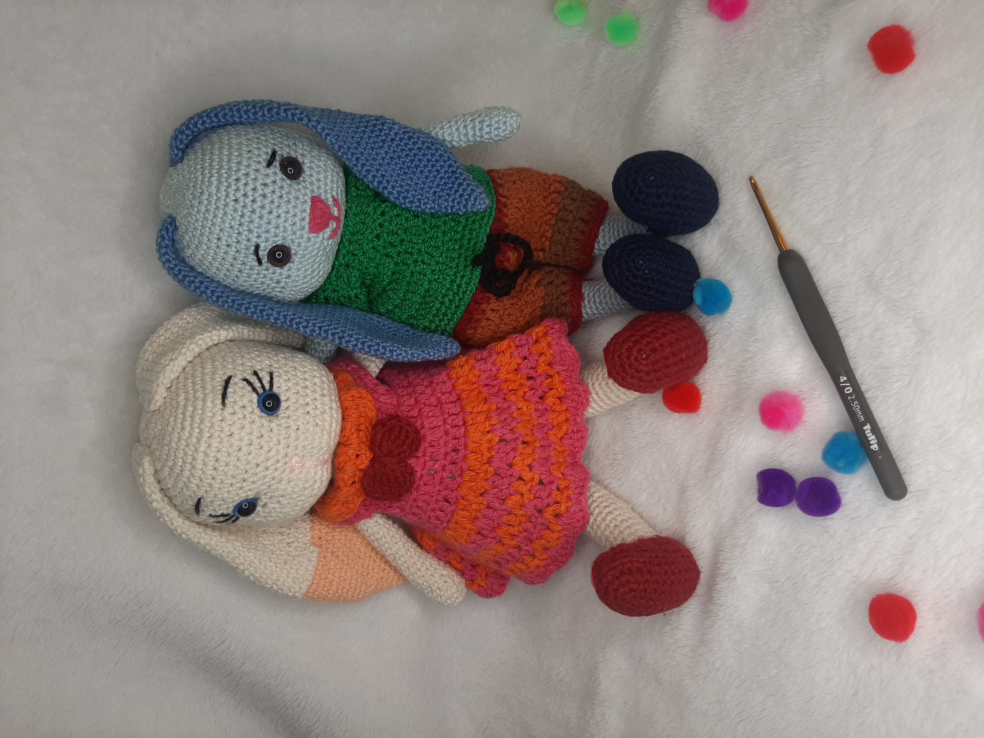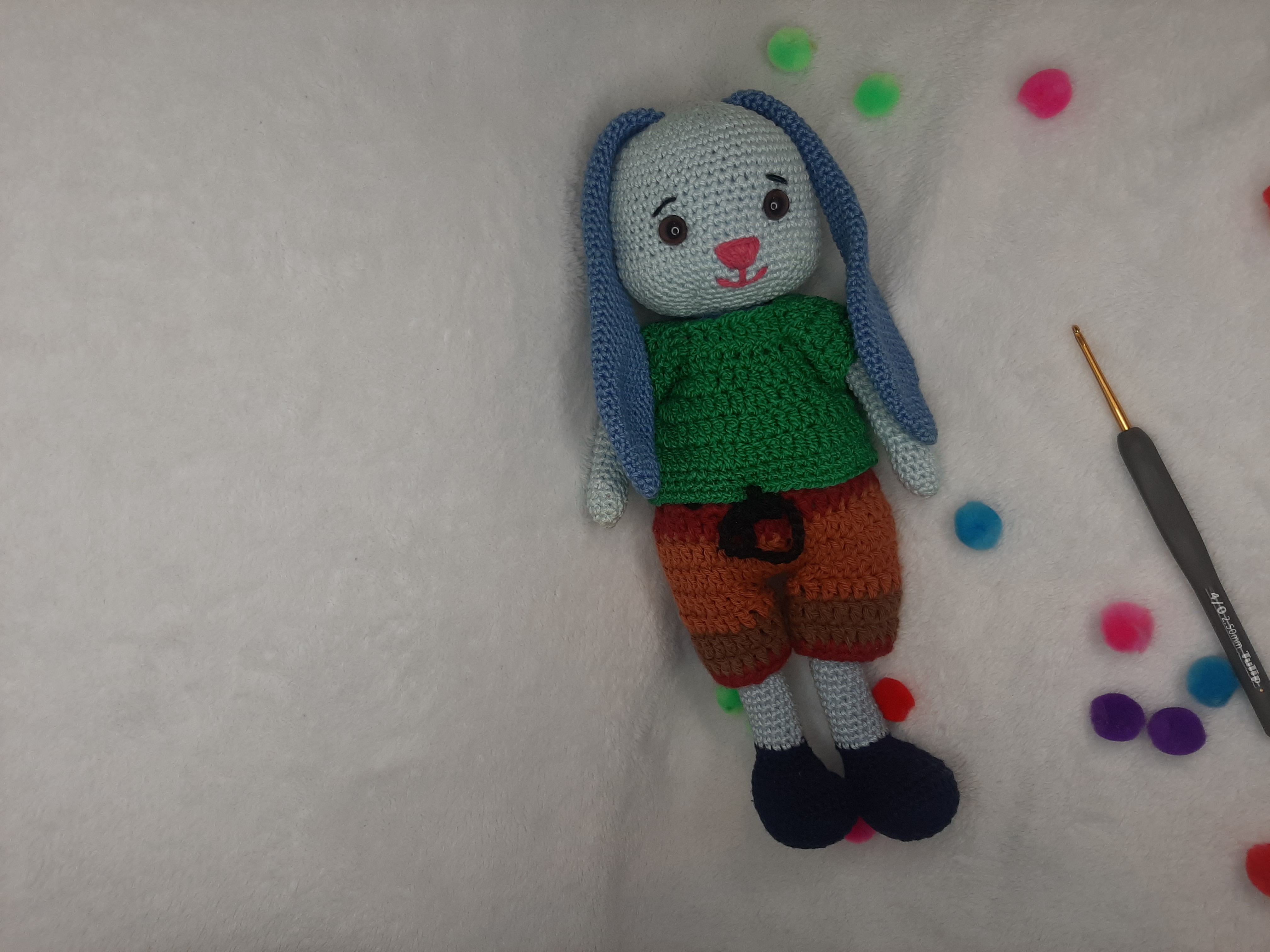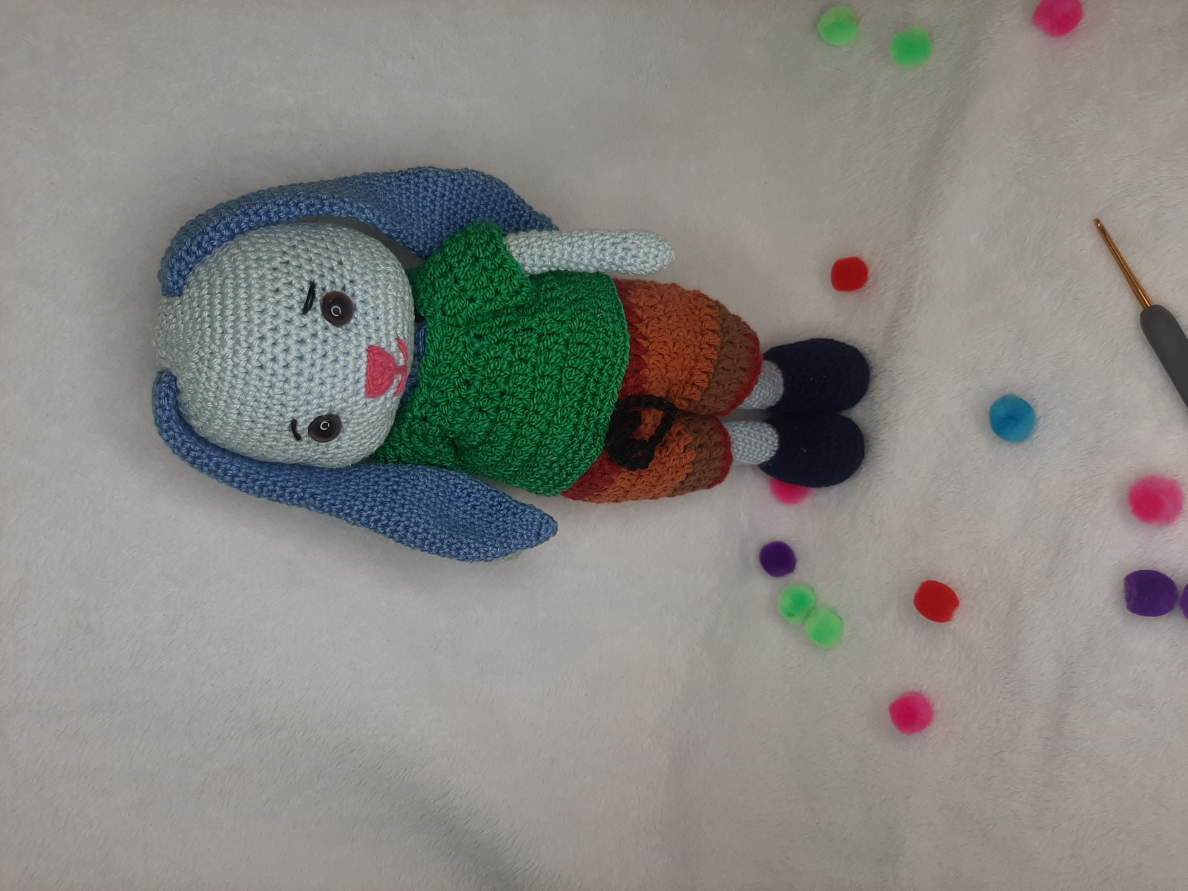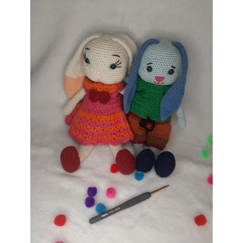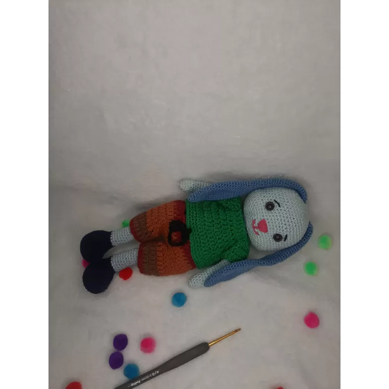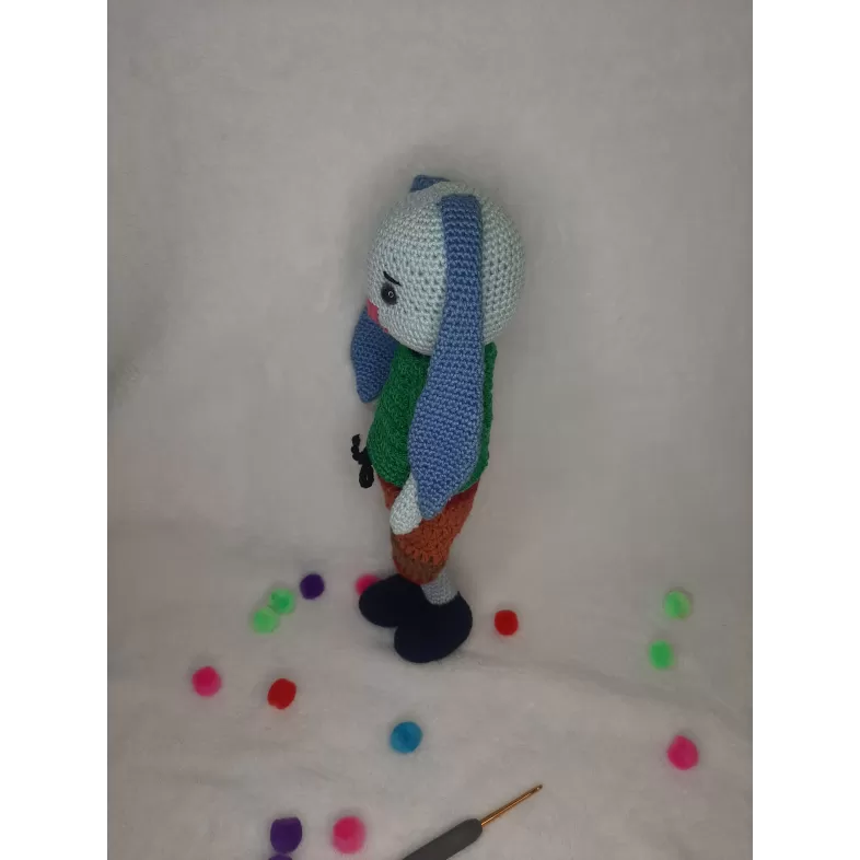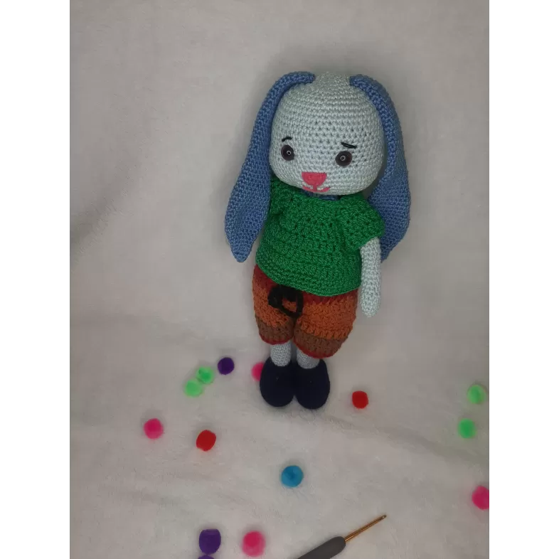 Acest adorabil iepuraș croșetat cu rochiță este companionul perfect pentru orice copil! Realizat manual din fire moi, iepurașul are urechi lungi și hăinuțe detașabile adaugă un strop de veselie. Fie că este folosit ca jucărie sau element decorativ, acest iepuraș va aduce bucurie și confort, devenind rapid un prieten de nădejde în aventurile celor mici. Ideal ca dar sau pentru a completa colecția de jucării!