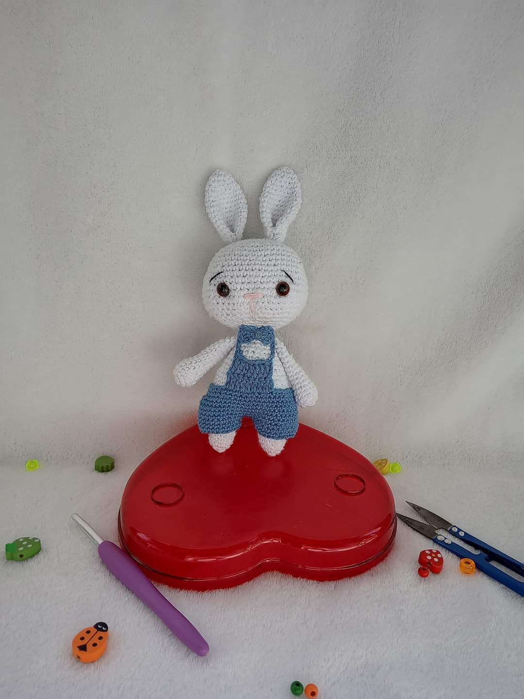 Acest adorabil iepuraș croșetat cu rochiță este companionul perfect pentru orice copil! Realizat manual cu ochii dublu securități. Fie că este folosit ca jucărie sau element decorativ, acest iepuraș va aduce bucurie și confort, devenind rapid un prieten de nădejde în aventurile celor mici. Ideal ca dar sau pentru a completa colecția de jucării!