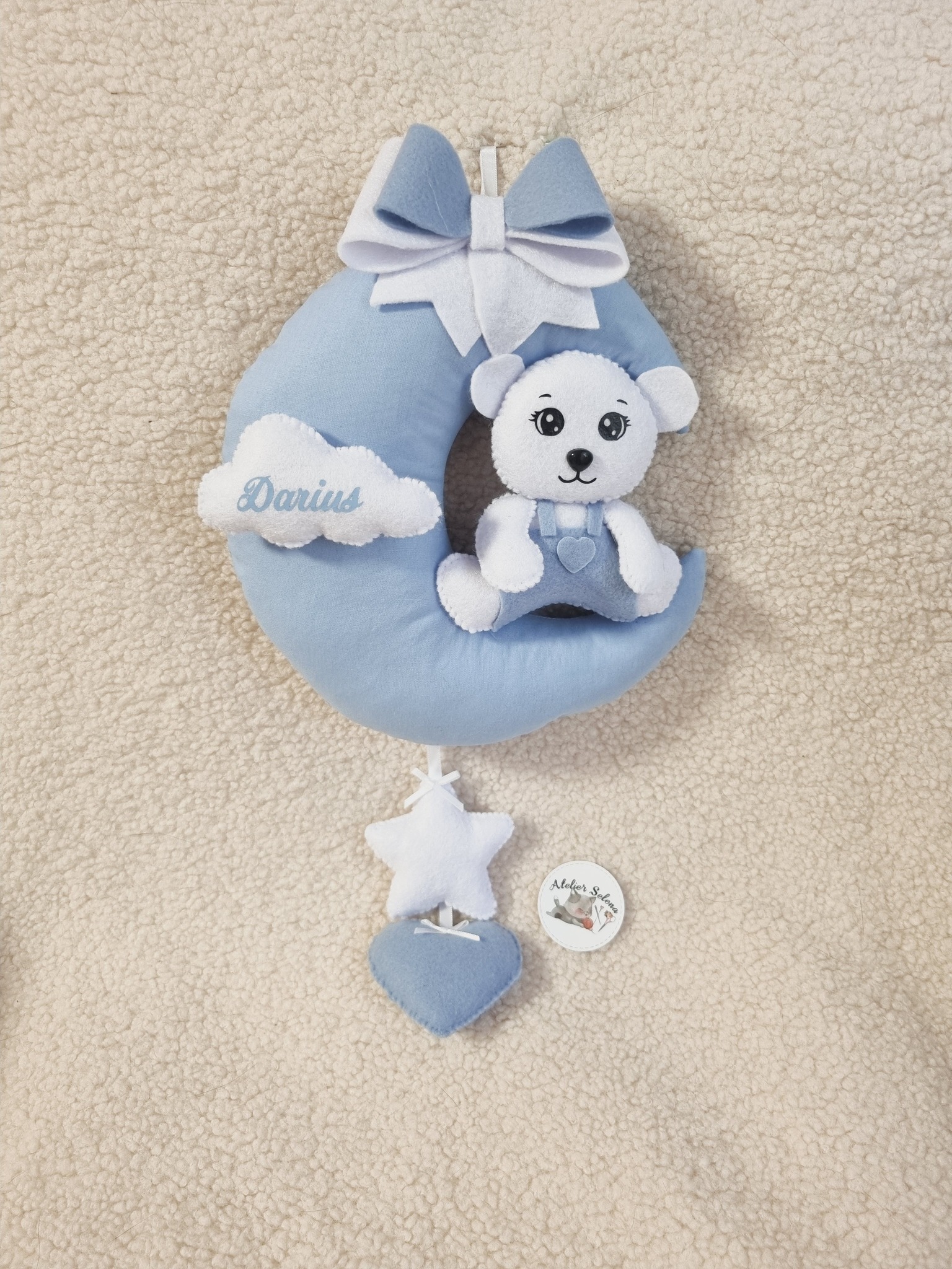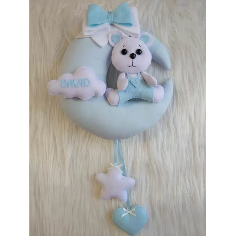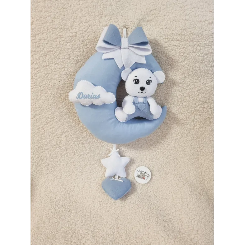 Decor luna cu ursulet din fetru/catifea