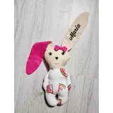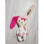 Papusica confectionata din bumbac , inaltime 28cm +22 cm urechile, umplutura antialergenica.