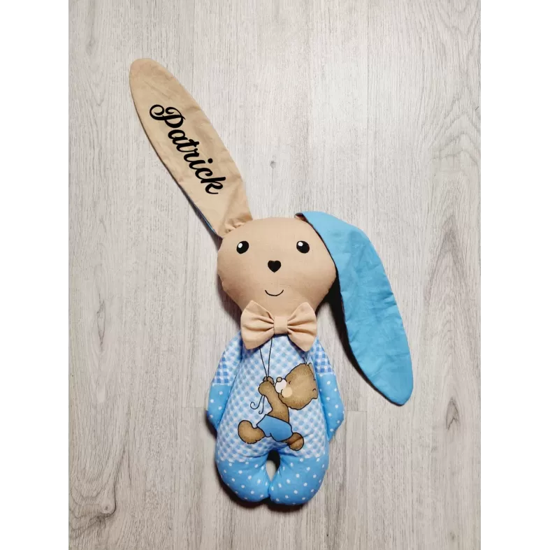 Papusica confectionata din bumbac , inaltime 28cm +22 cm urechile, umplutura antialergenica.