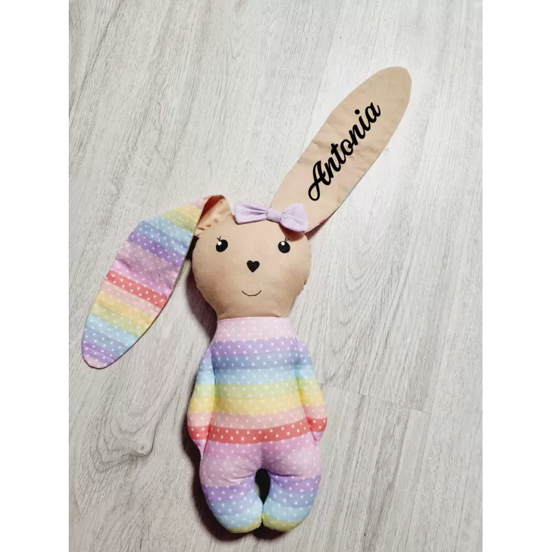 Papusica confectionata din bumbac , inaltime 28cm +22 cm urechile, umplutura antialergenica.