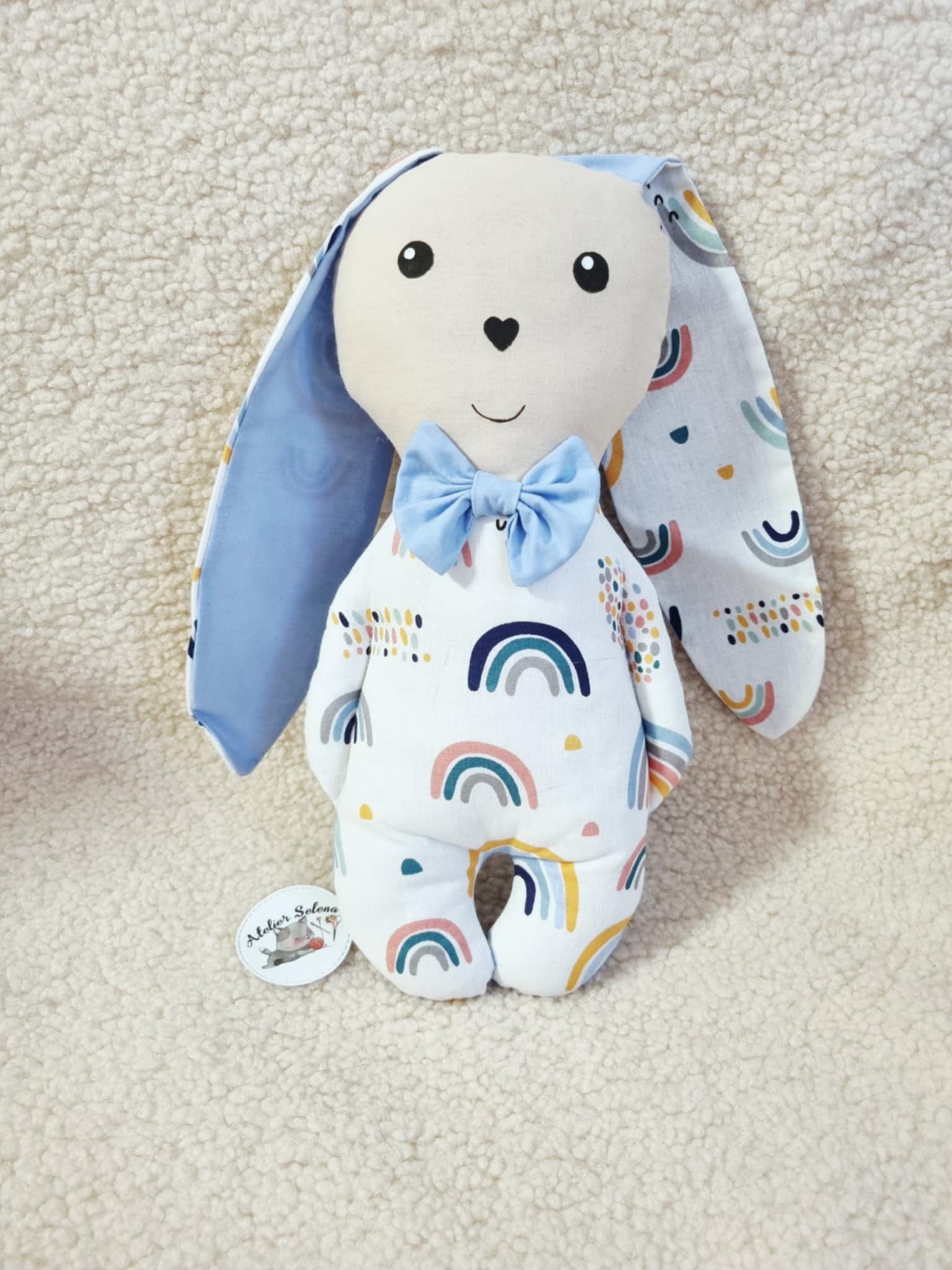 Papusica confectionata din bumbac , inaltime 28cm +22 cm urechile, umplutura antialergenica.