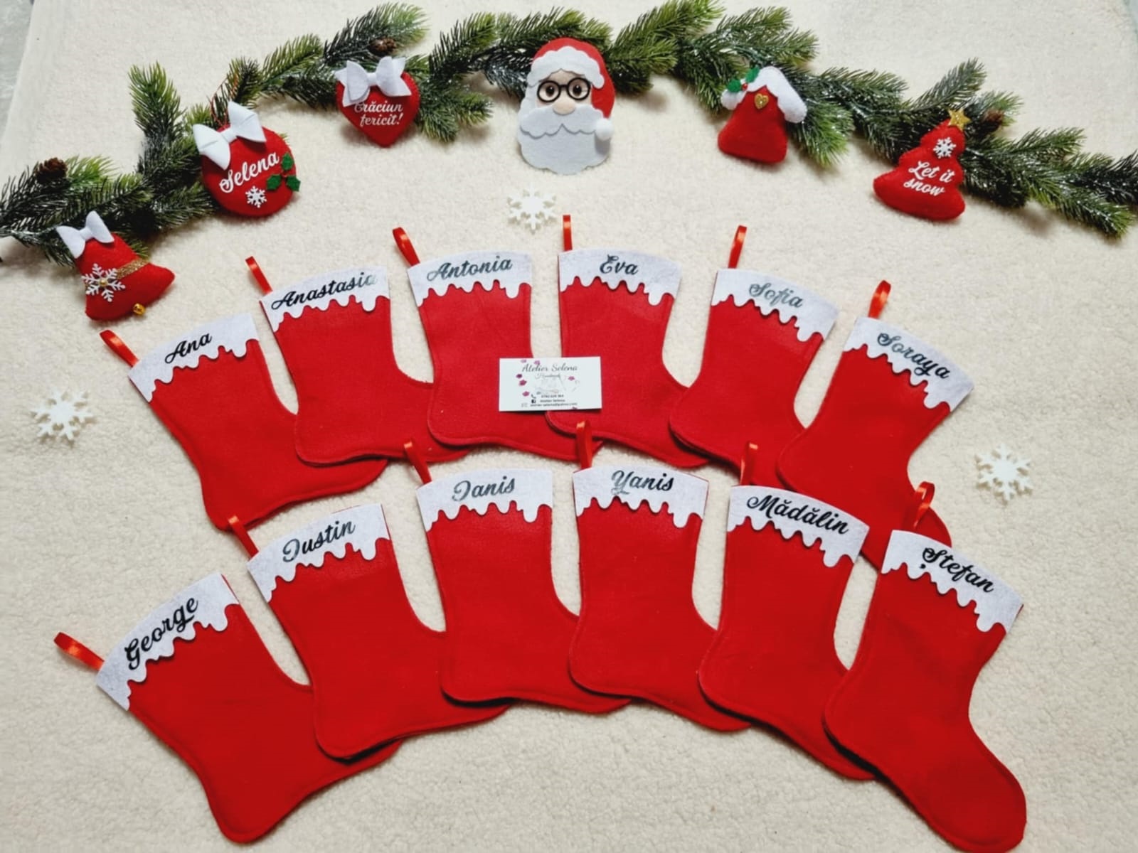 Cizmulitele / ghetute mici pentru dulciuri Se personalizeaza cu numele dorit, pretul se refera la o bucata. Va rugam specificati in casuta "Personalizeaza produsul" numele dorit si culoarea , altfel veti primii produsul simplu si culoare aleatorie.Culorile pot sa difere putin in functie de setarile telefonului/ calculatorului dumneavoastra.Dimensiuni 16 x 12 cm.
