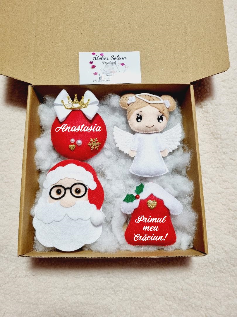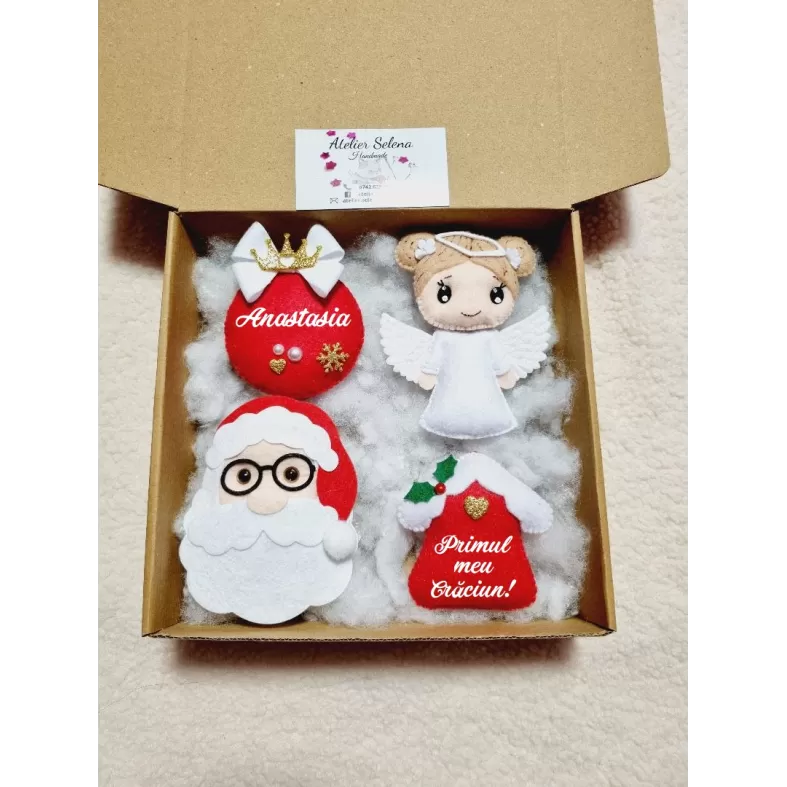 Pretul afisat este pe set.Se pot personaliza cu UN singur nume DOAR globuletele rotunde, restul textelor sunt standard. Va rugam specificati in casuta "Personalizeaza produsul" numele dorit, altfel veti primii produsul simplu si daca doriti o culoare anume a parului. Exp: Diana/Matei- blonda /brunet/șaten.Dimensiunea unui glob/ornament este de 9-12 cm aprox.Culorile pot sa difere putin in functie de setarile telefonului/ calculatorului dumneavoastra.Pe baza de comanda, dureaza aproximativ 5-7 zile lucratoare, va rugam comandati din timp comenzile necesita timp iar in perioada sarbatorilor curierii sunt foarte aglomerati.