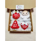 Se pot personaliza cu UN singur nume DOAR globuletele rotunde, restul textelor sunt standard.
