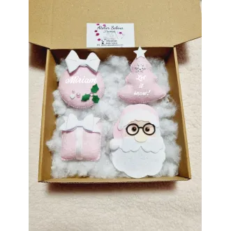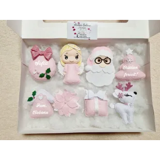Pretul afisat este pe set .Se pot personaliza cu UN singur nume DOAR globuletele rotunde, restul textelor sunt standard.  Va rugam specificati in casuta "Personalizeaza produsul"  numele dorit, altfel veti primii produsul simplu si daca doriti o culoare anume a parului. Exp: Diana/Matei- blonda /brunet/șaten. Dimensiunea unui glob/ornament este de 9-12 cm aprox.Culorile pot sa difere putin in functie de setarile telefonului/ calculatorului dumneavoastra. Pe baza de comanda, dureaza aproximativ 5-7 zile lucratoare, va rugam comandati din timp comenzile necesita timp iar in perioada sarbatorilor curierii sunt foarte aglomerati.