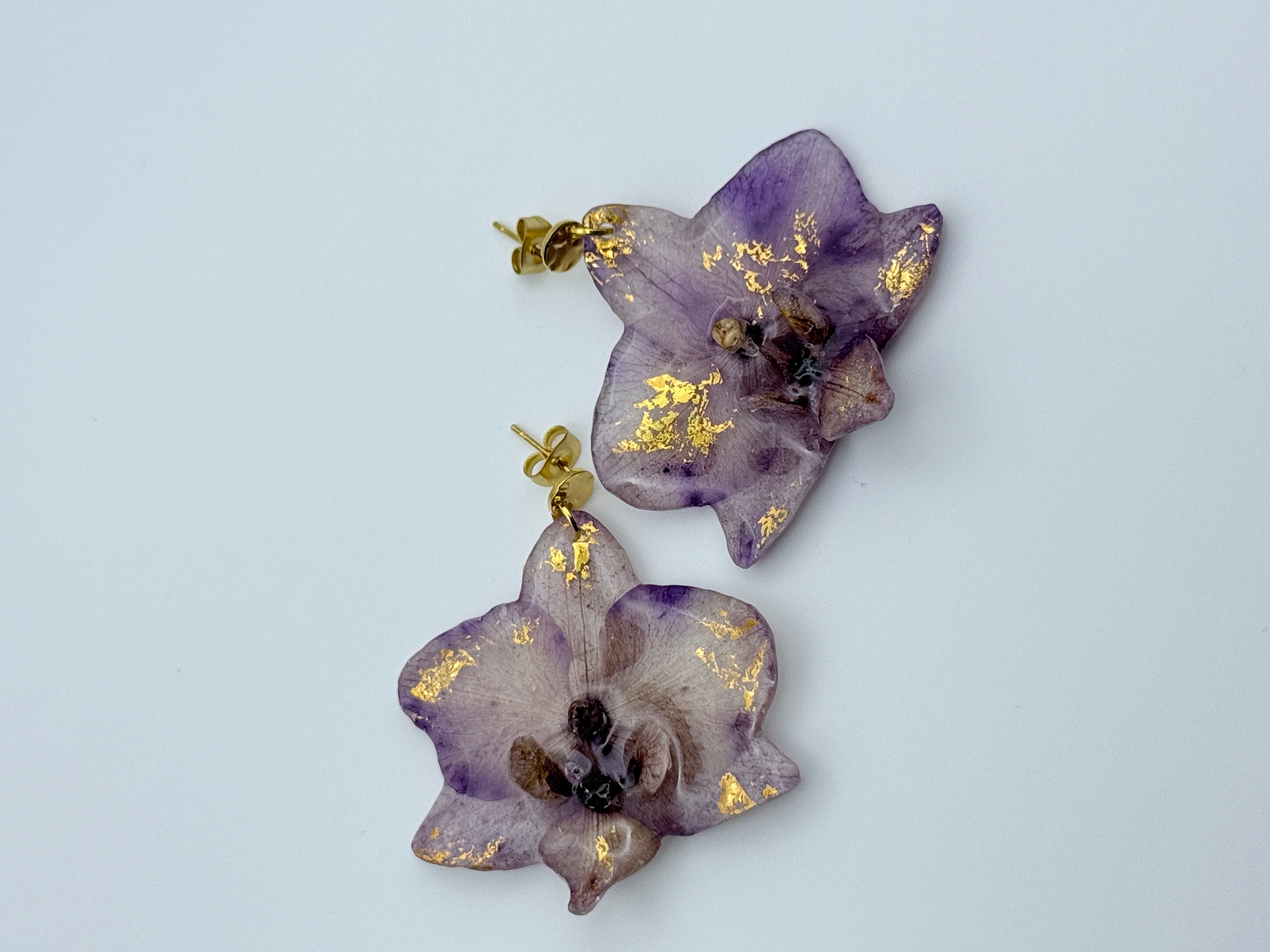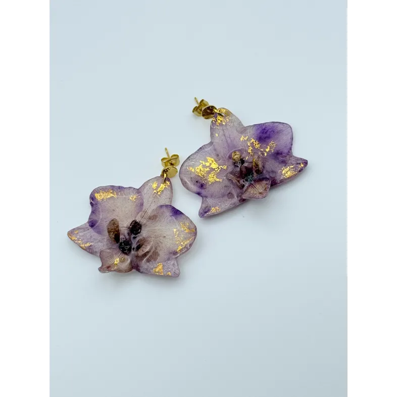 Realizați manual din orhidee naturale, acești cercei păstrează eleganța și rafinamentul florii în cea mai pură formă.