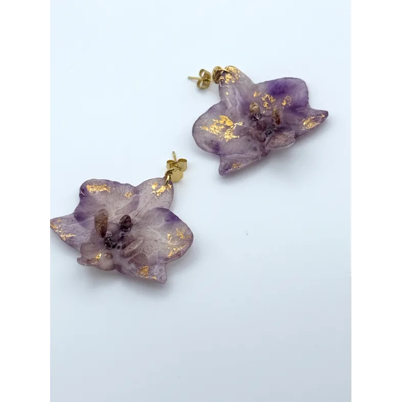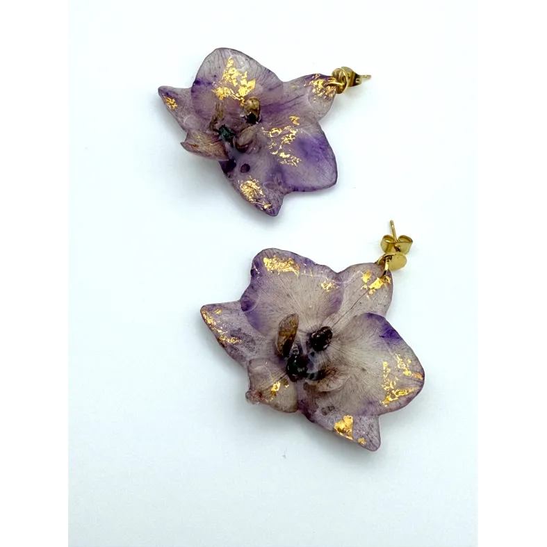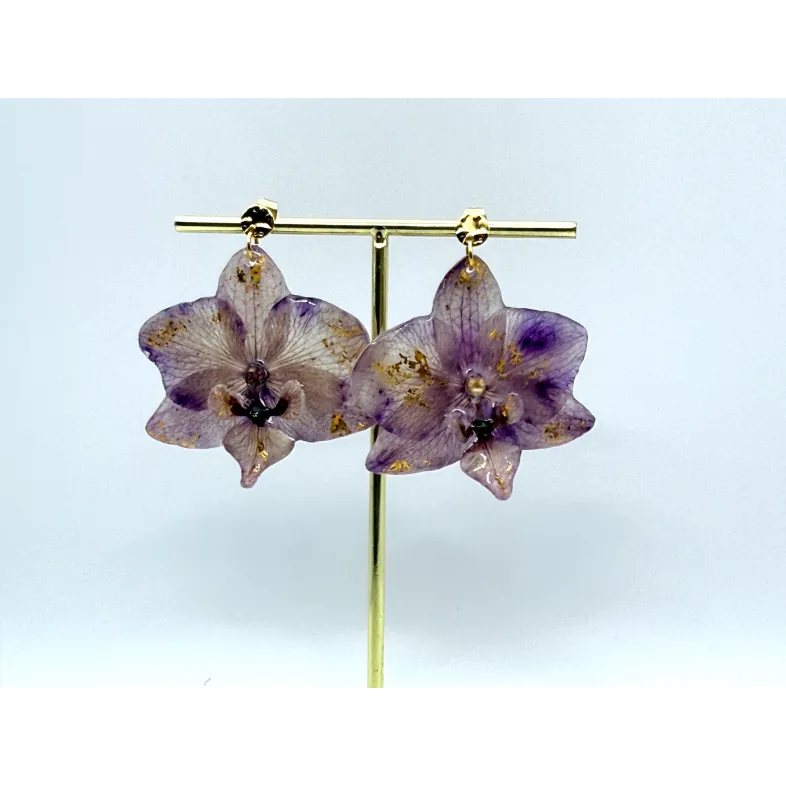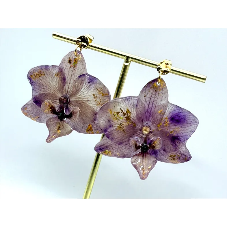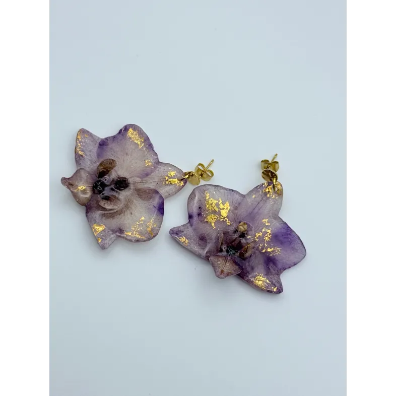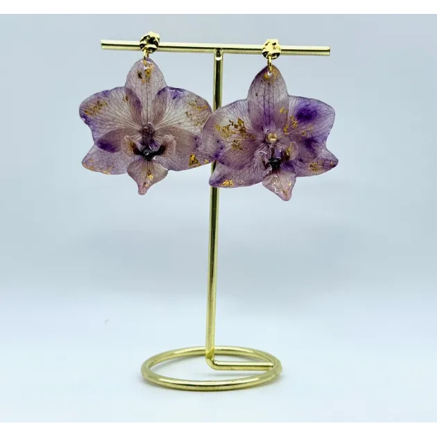 Cercei unicat cu flori naturale de orhidee
