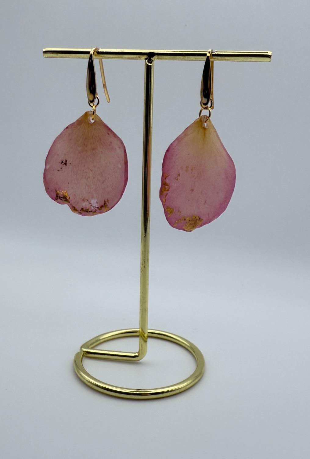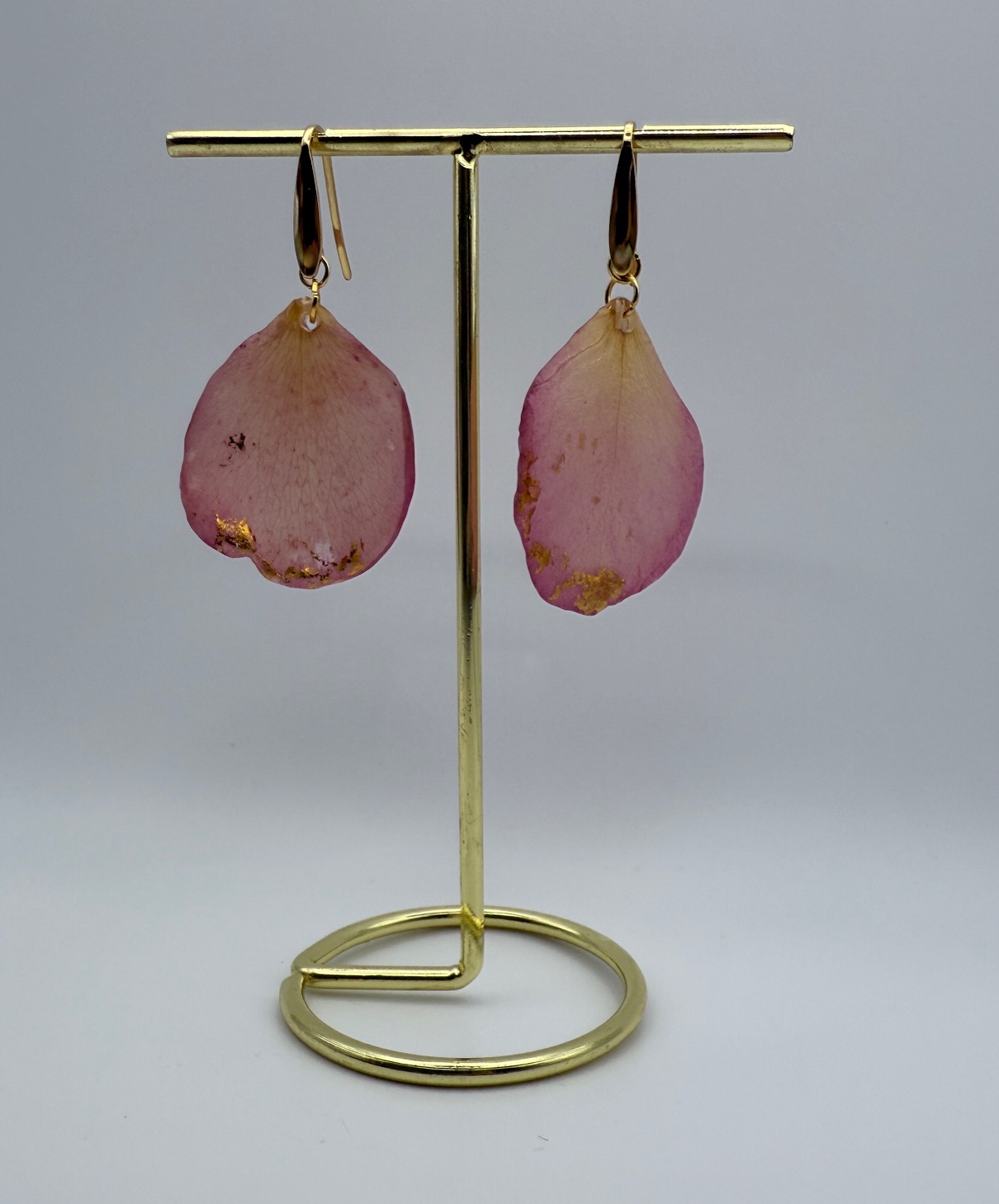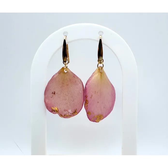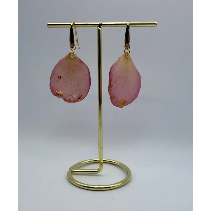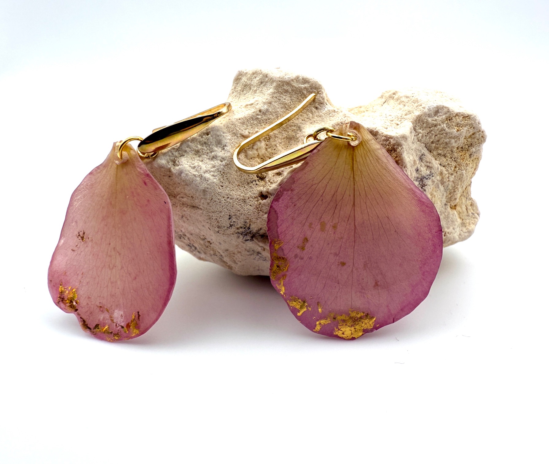 Simbol al iubirii și pasiunii, trandafirul capătă o formă nouă în acești cercei unicat. Petalele naturale sunt conservate cu grijă, fiecare pereche având o dispunere unică.