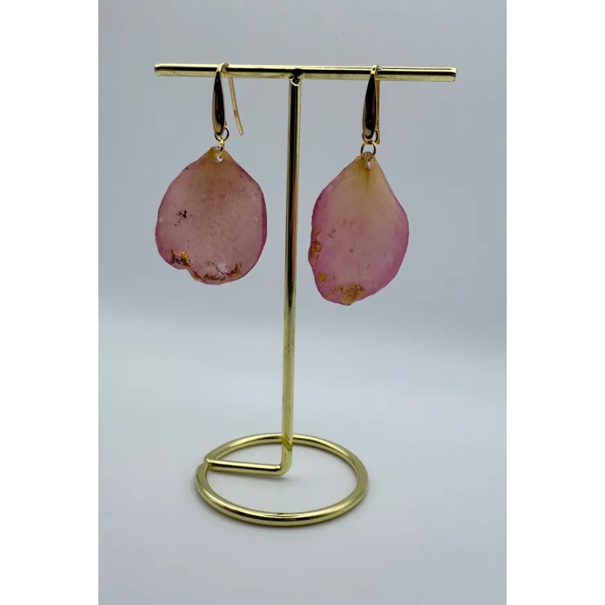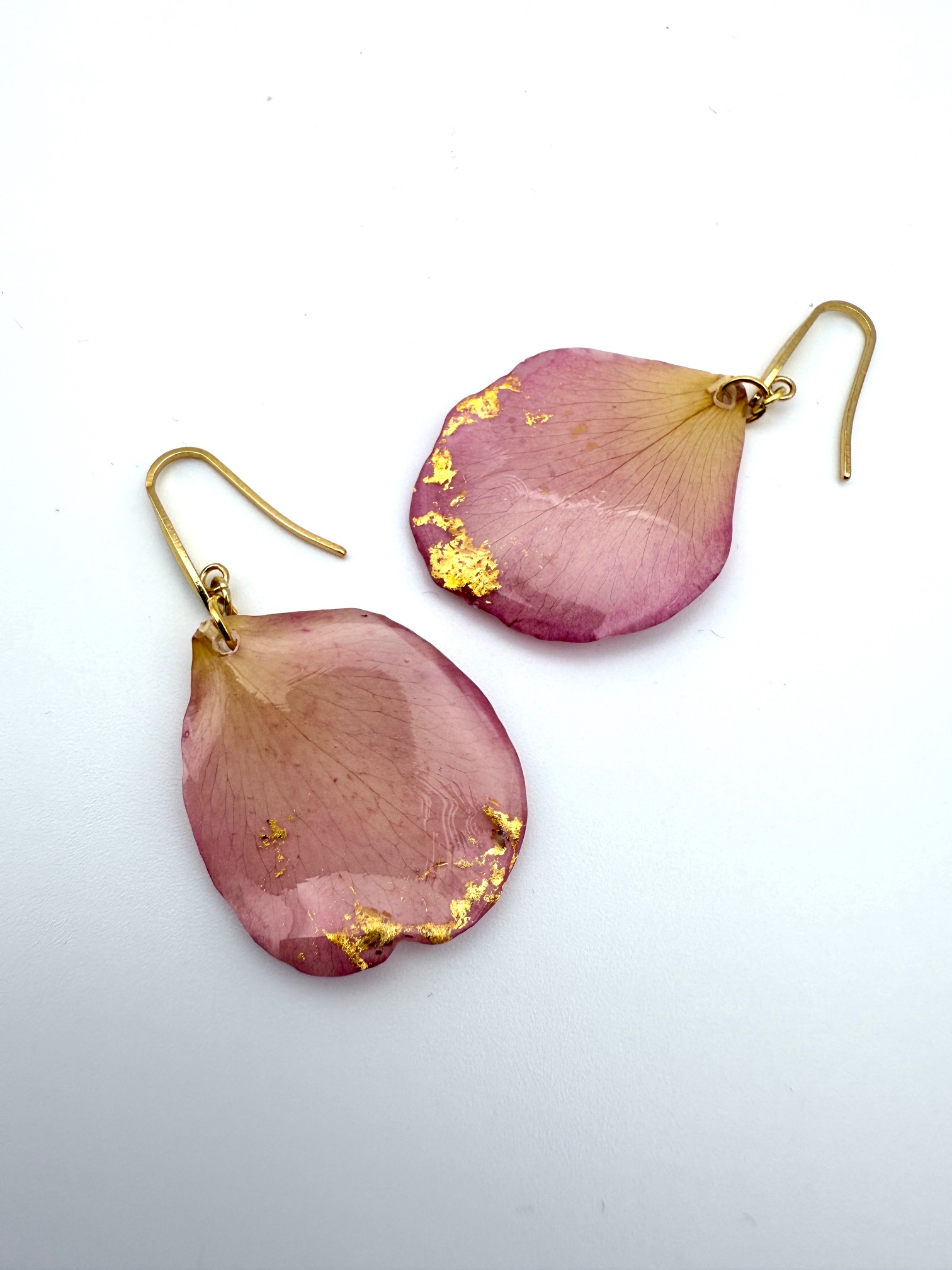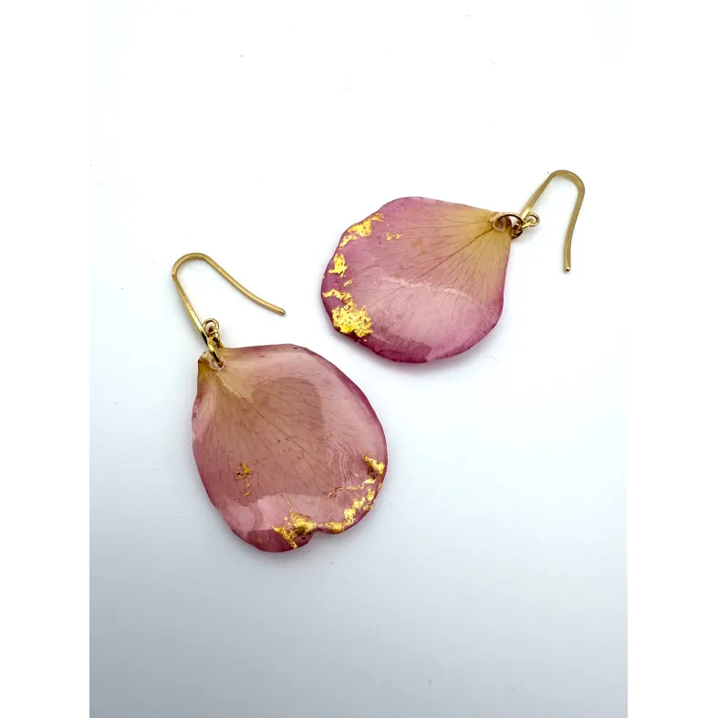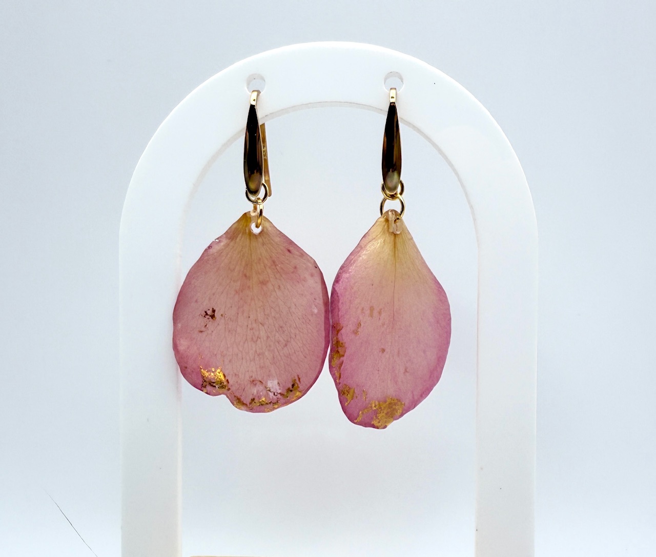 Simbol al iubirii și pasiunii, trandafirul capătă o formă nouă în acești cercei unicat. Petalele naturale sunt conservate cu grijă, fiecare pereche având o dispunere unică.