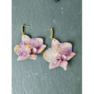 Fiecare pereche de cercei este creată manual, folosind flori presate cu grijă și rășină de calitate. O combinație armonioasă între artă, natură și design. Floare: orhidee naturala mov, deschidratata si imbracata in rasina uv cu accesorii din otel inoxidabil. Folosim flori delicate, presate sau uscate cu grijă, pe care le transformăm în accesorii durabile și pline de farmec. Pandantivele și cerceii din colecția noastră sunt creați manual, astfel încât fiecare model este cu adevărat original. Tip produs: Lucrat manual Materiale: accesorii otel inoxidabil, floare naturala, rasina uv Dimensiuni: Aprox: 5 cm