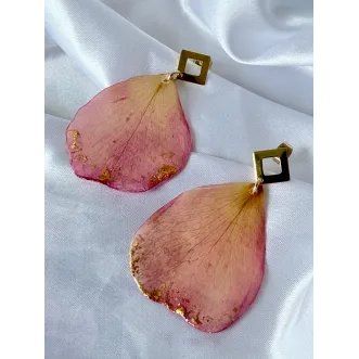 Realizați din rășină premium, acești cercei păstrează frumusețea florilor reale, oferind un accesoriu distinct și modern. Fiecare bijuterie este realizată manual, din materiale atent selectate. Ne dedicăm să oferim calitate premium și design deosebit, pentru ca tu să porți natură, culoare și autenticitate în fiecare zi. Petalele naturale din trandafir roz pudrat sunt imbracate in rasina uv. Tip produs: Lucrat manual Materiale: accesorii otel inoxidabil, petale trandafir naturale, rasina uv Dimensiuni: Aprox: 4-5 cm