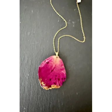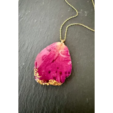 Alege un pandantiv cu petala de trandafir naturala pentru un cadou memorabil. Bijuteriile noastre sunt create prin integrarea florilor naturale reale în rășină premium. Fiecare piesă este unică, lucrată manual cu atenție la detalii și inspirată de frumusețea naturii. Alege o bijuterie care nu doar accesorizează, ci spune o poveste. Petala naturala de trandafir corai imbracata in rasina si accesorizata cu accesorii din otel inoxidabil. Tip produs: Lucrat manual Materiale: accesorii otel inoxidabil, floare naturala, rasina uv Dimensiuni: lant: 40 cm Pandantiv Aprox: 3-4 cm