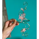 Detalii Diafane: Floricelele de sticlă lucrate cu grijă și cristalele care captează lumina creează un joc de reflexii spectaculos, oferind un aer prețios și delicat.