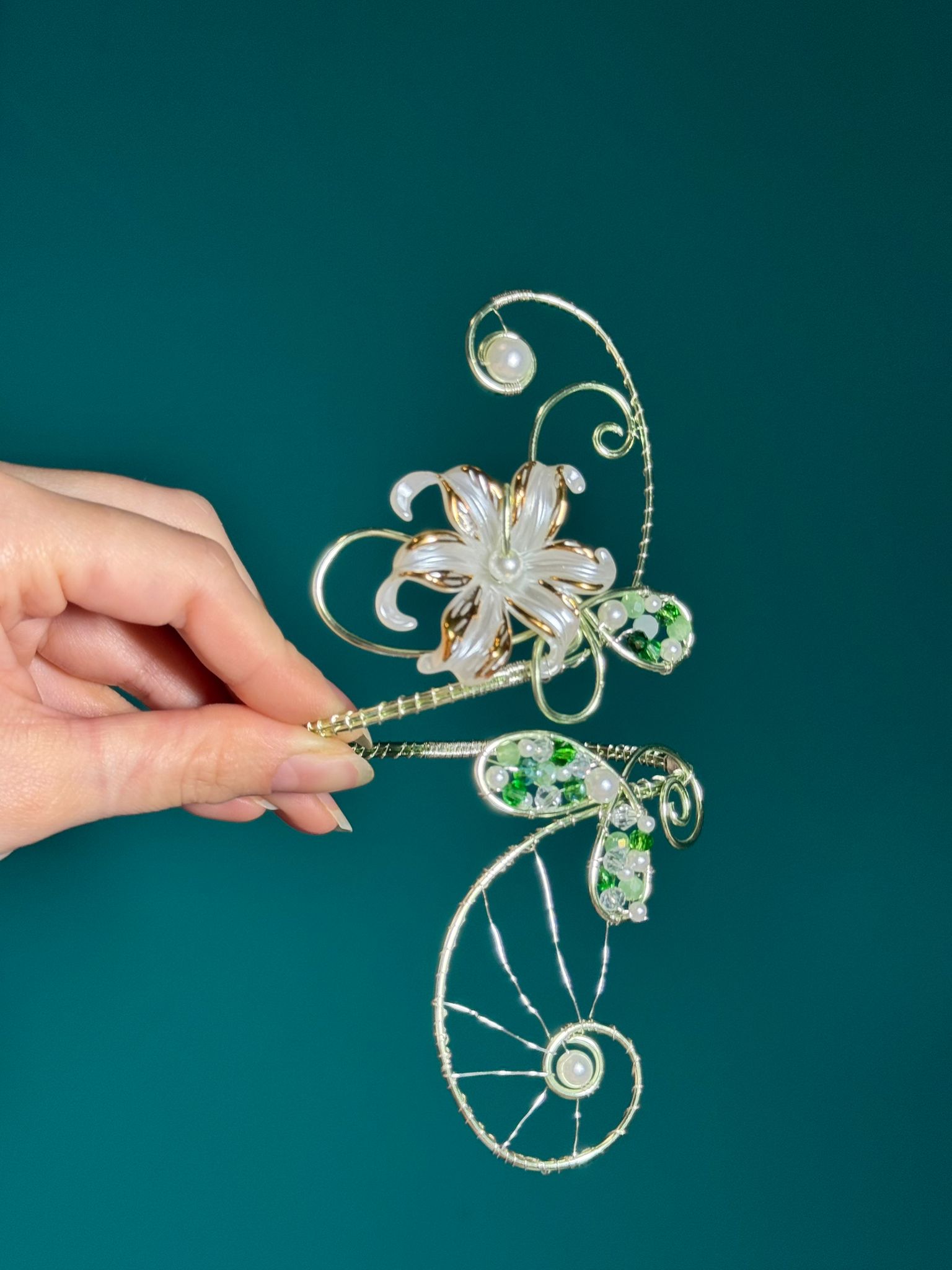 Măiestrie Hand-Made: Fiecare buclă și fiecare cristal sunt poziționate manual, garantând o piesă unică, imposibil de replicat identic.