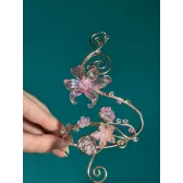 Materiale: Sârmă de cupru emailată (verde),quart roz, cristale de sticlă,perle sticla.