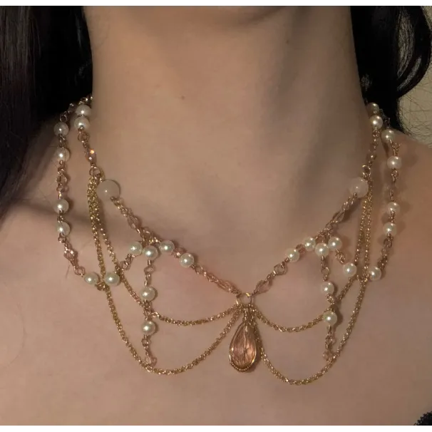 Această combinație de materiale transformă colierul într-o piesă extrem de feminină, romantică și plină de semnificație. Cuarțul roz, cunoscut drept piatra iubirii necondiționate, alături de delicatețea perlelor și sclipirea cristalelor de șampanie, creează un accesoriu cu o estetică „soft-glam” impecabilă.