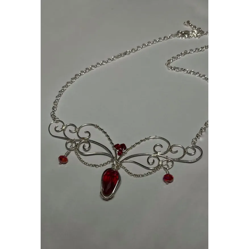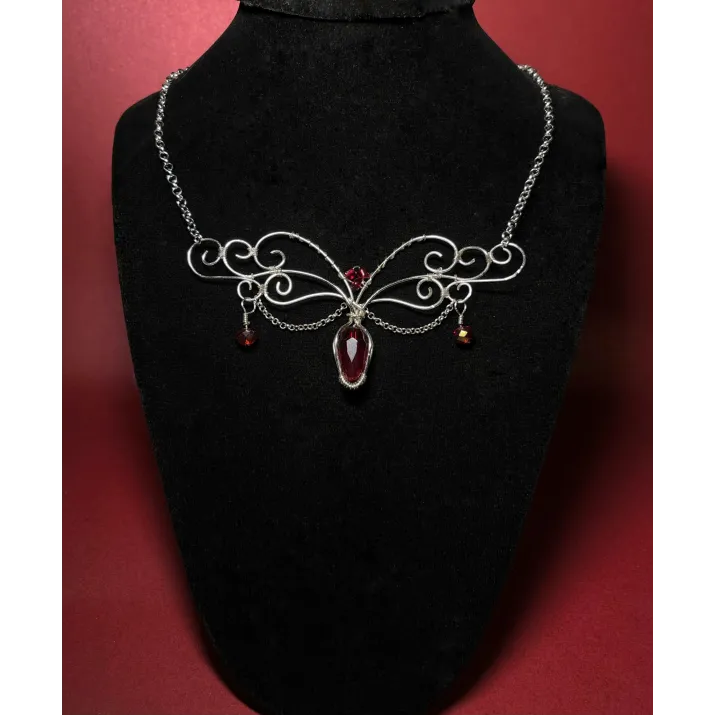 Răsfață-te cu o bijuterie care emană rafinament și mister. Colierul Bordeaux Sparkle este o piesă artizanală creată prin tehnica migăloasă a modelării firului de cupru placat cu argint, pusă în valoare de sclipirile profunde ale cristalelor de culoarea burgundy. Este accesoriul ideal pentru femeia care iubește eleganța clasică cu o notă dramatică.