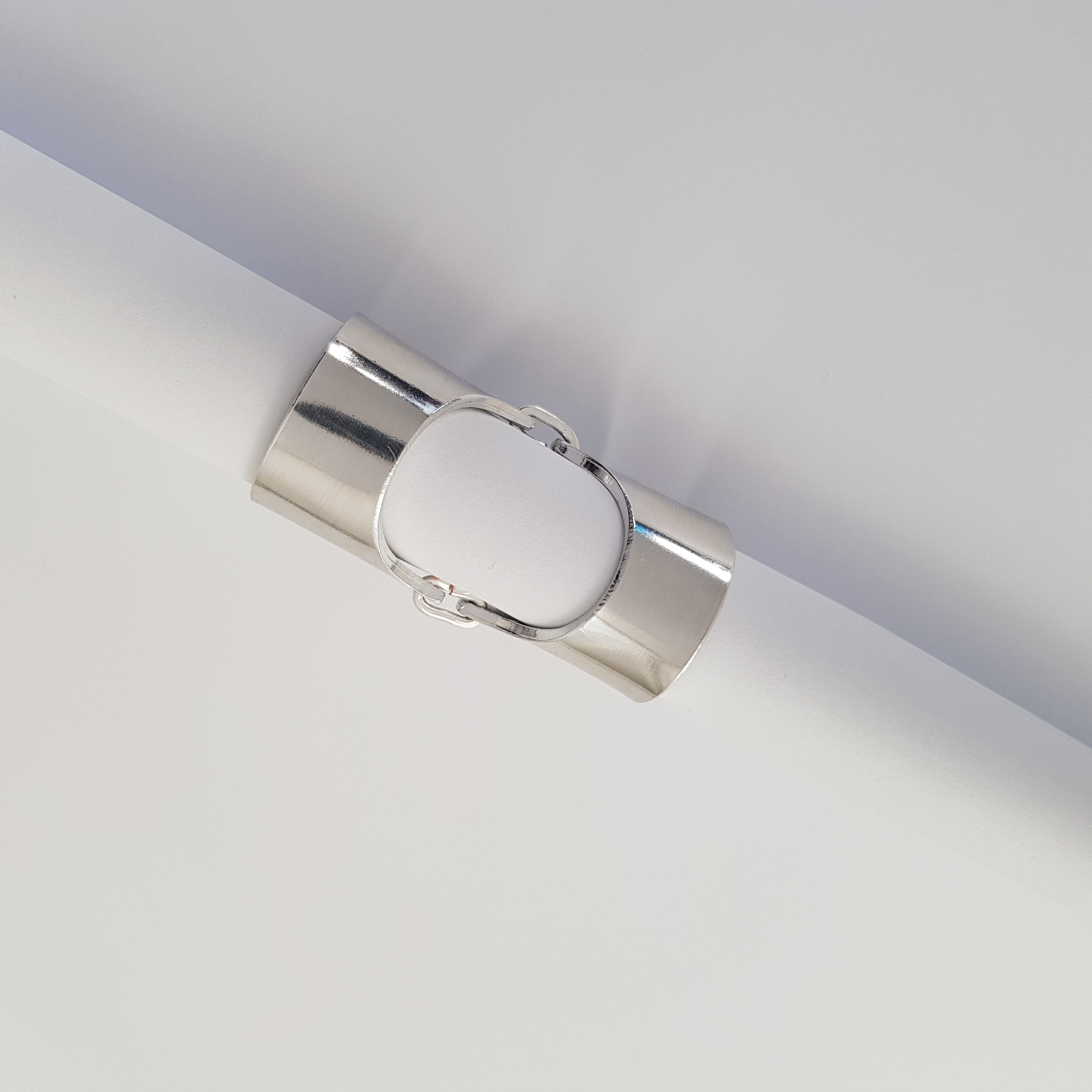 Calitate și Strălucire: Realizat din cupru placat cu argint, inelul are un finisaj neted, oglindit, care reflectă lumina spectaculos la fiecare gest.