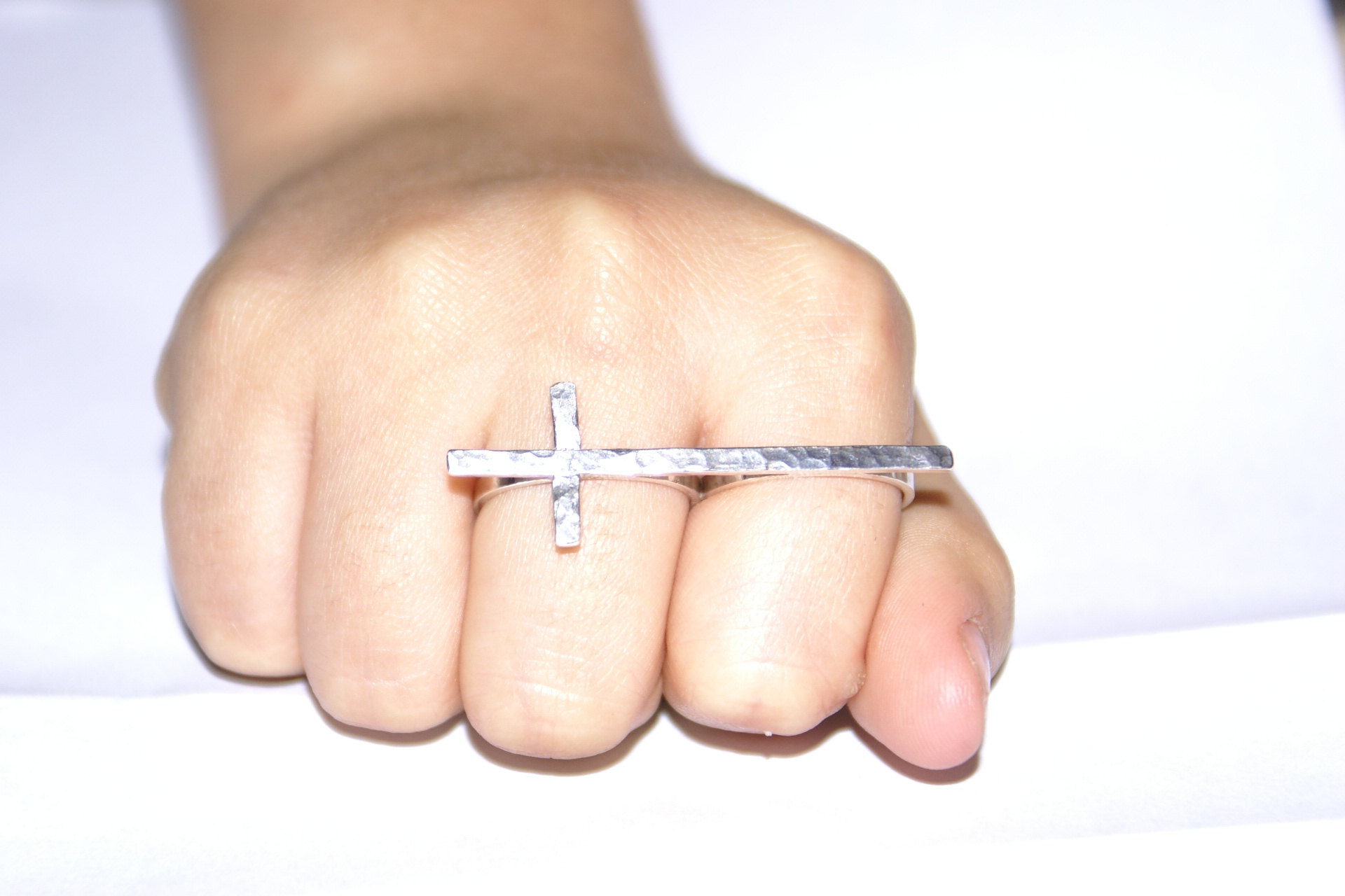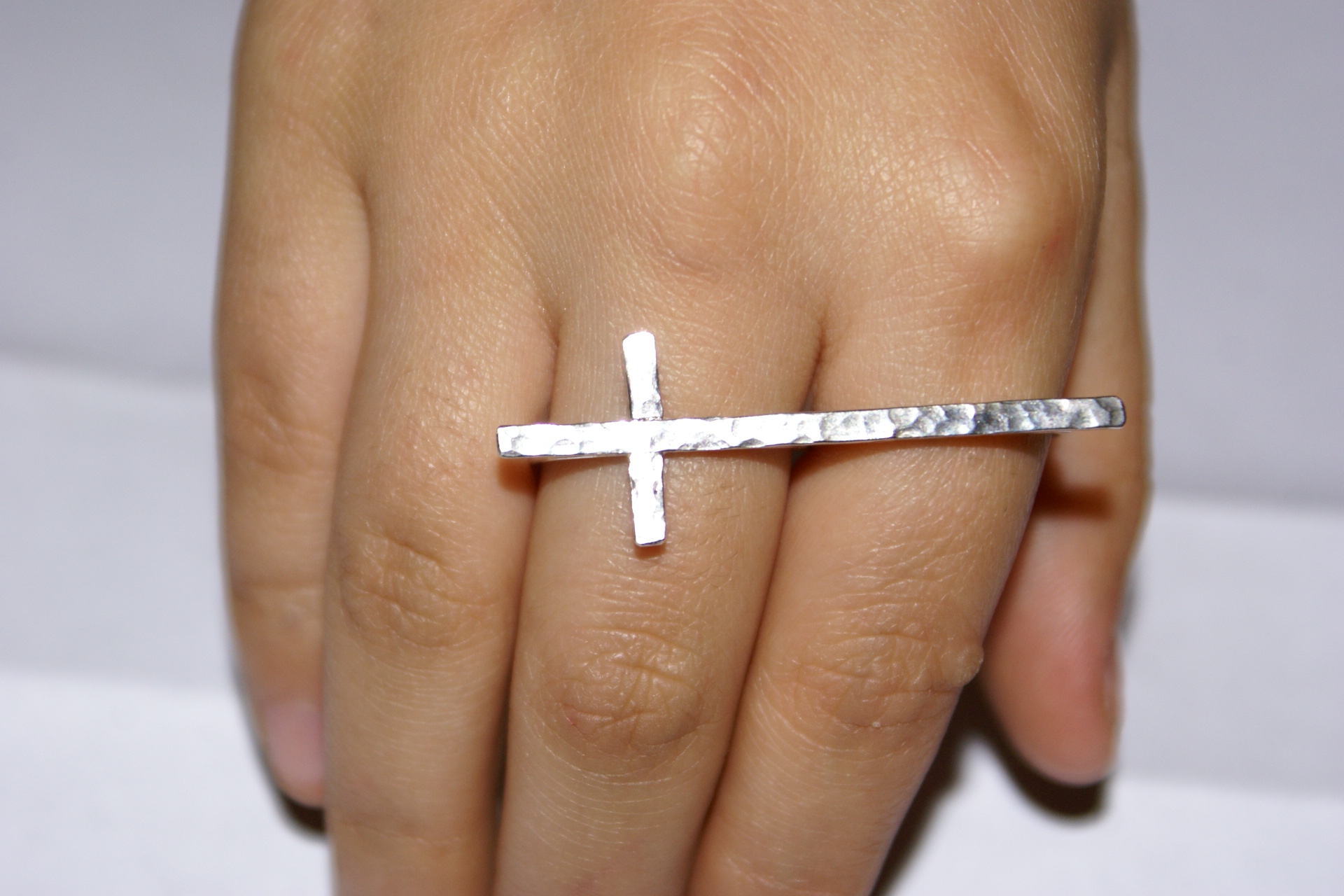 Finisaj Hand-Hammered: Suprafața crucii prezintă o textură bătută manual, care reflectă lumina în mod neregulat, oferind bijuteriei un aspect organic și autentic.
