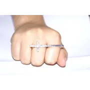 Definește-ți stilul cu o piesă care sparge barierele designului convențional. Inelul dublu cu cruce orizontală este mai mult decât un accesoriu; este o declarație de stil minimalist, ideală pentru cei care caută bijuterii cu caracter și o estetică urban-contemporană.