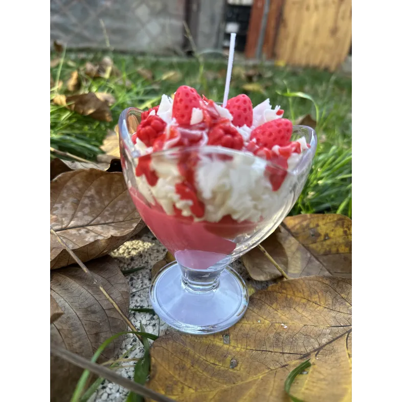 Aroma de căpșuni, recipient 220 ml, ceară naturală de soia, turnată manual