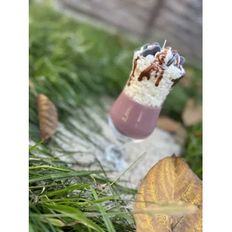 Lumânare parfumată frappe cu aromă de cafea proaspăt măcinată , recipient reutilizabil 450 g, ceară naturală de soia , turnată manual