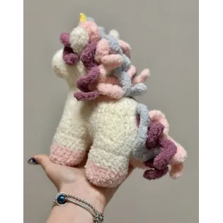 Plușul este croșetat manual din fire moi și pufoase (Alize softy) Aproximativ: 20cm înălțime x 15cm lungime Produsul este nou, făcut special pentru vânzare