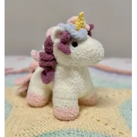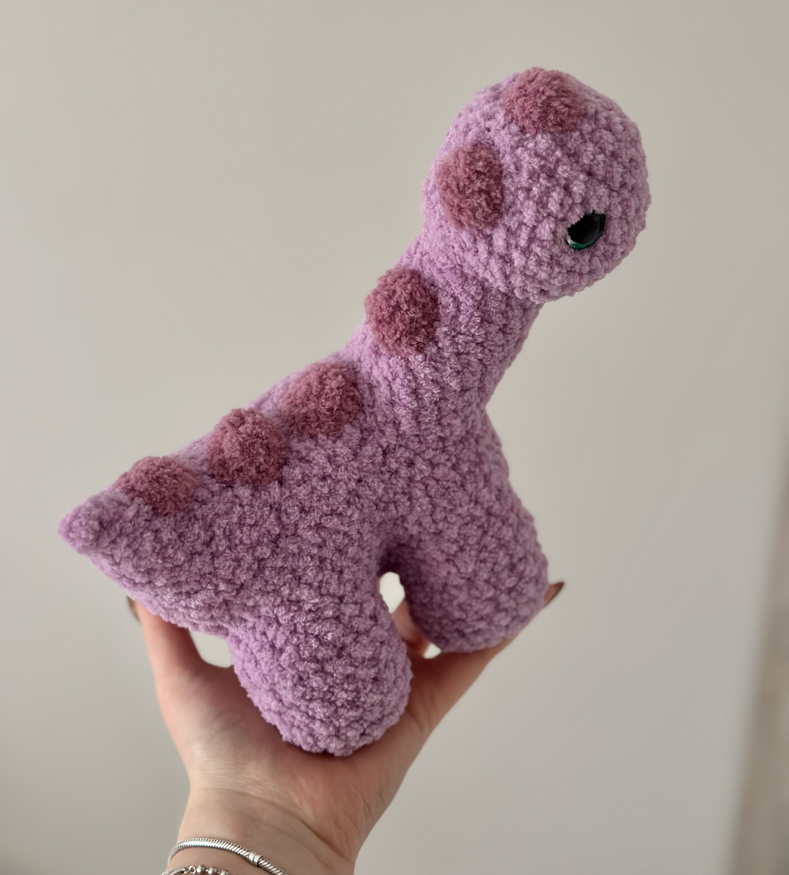 Plușul este croșetat manual din fire moi și pufoase (Alize Softy)