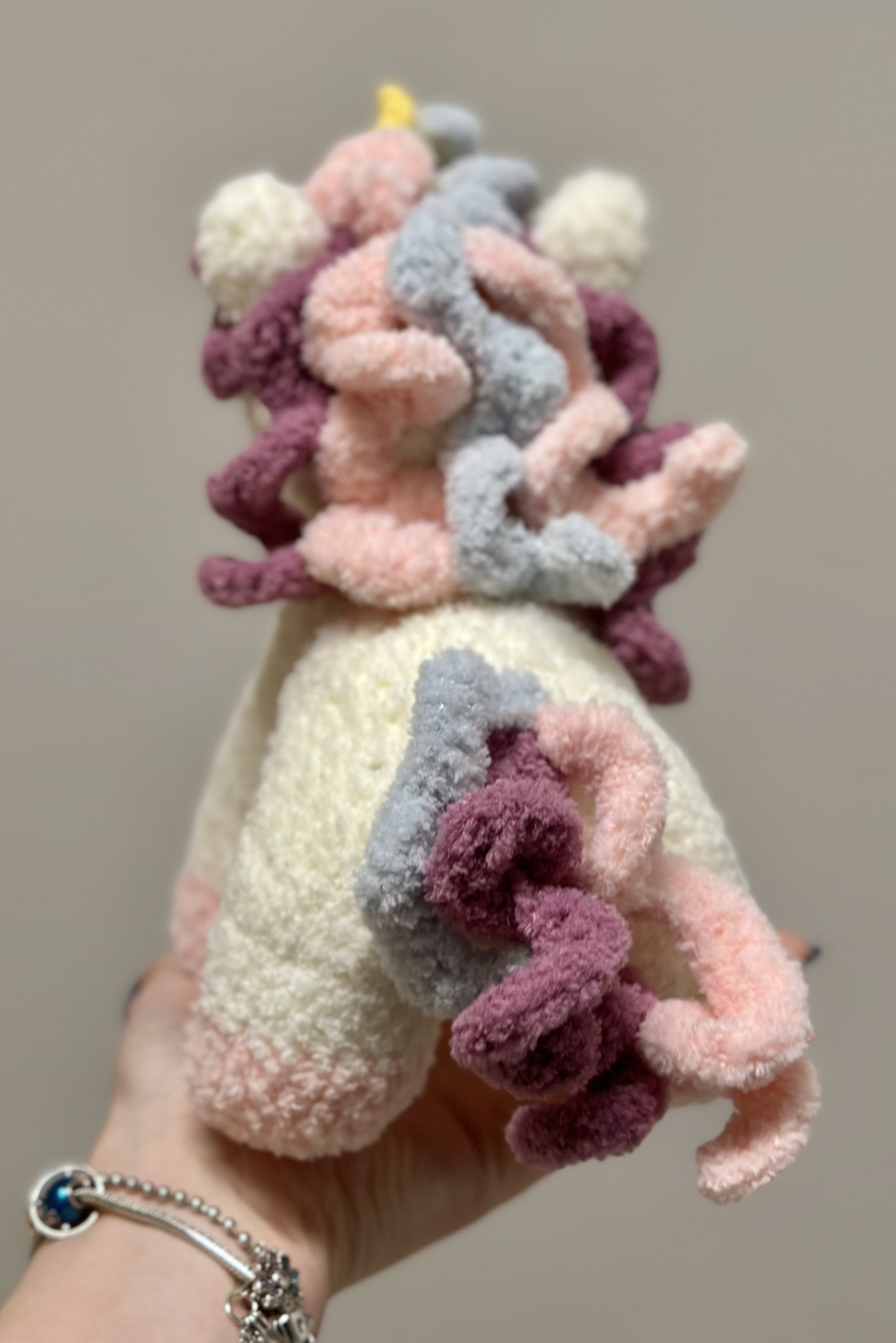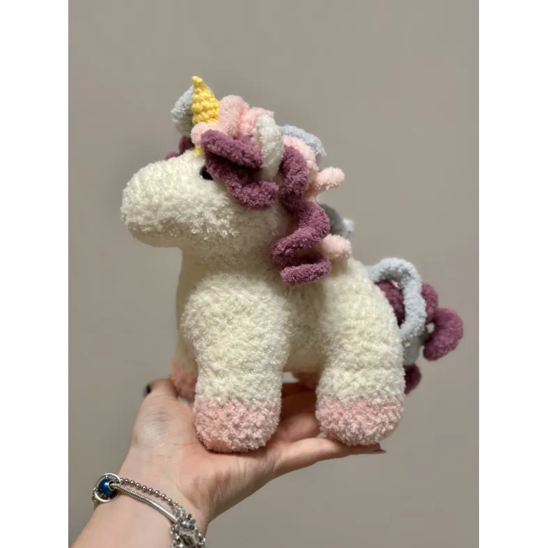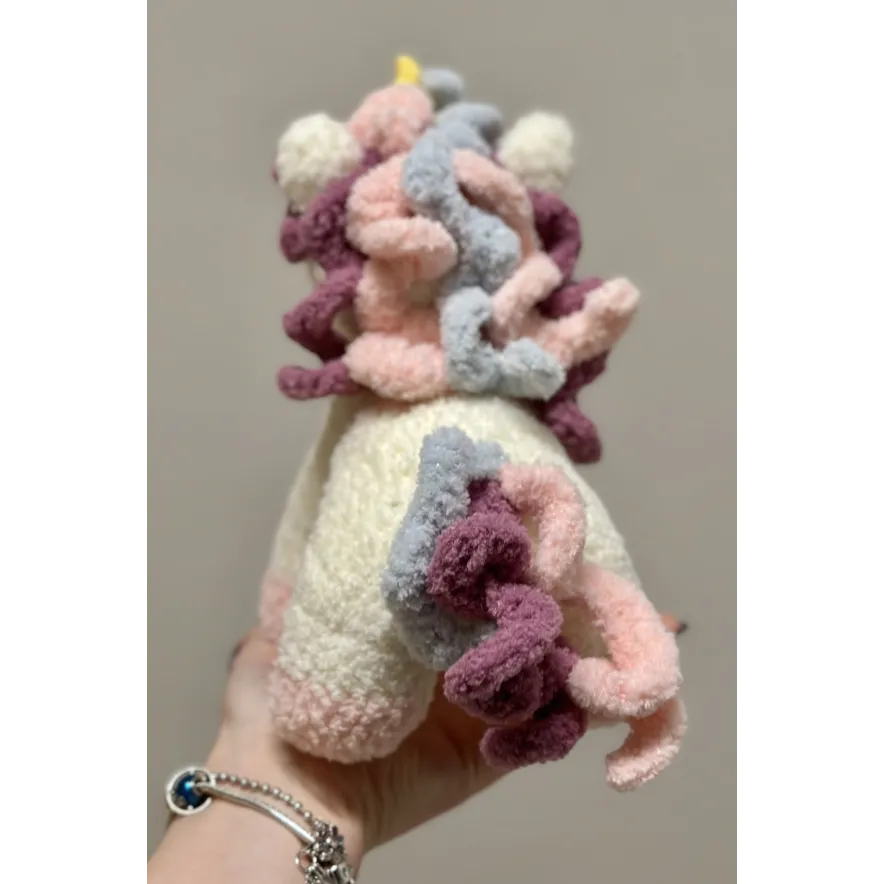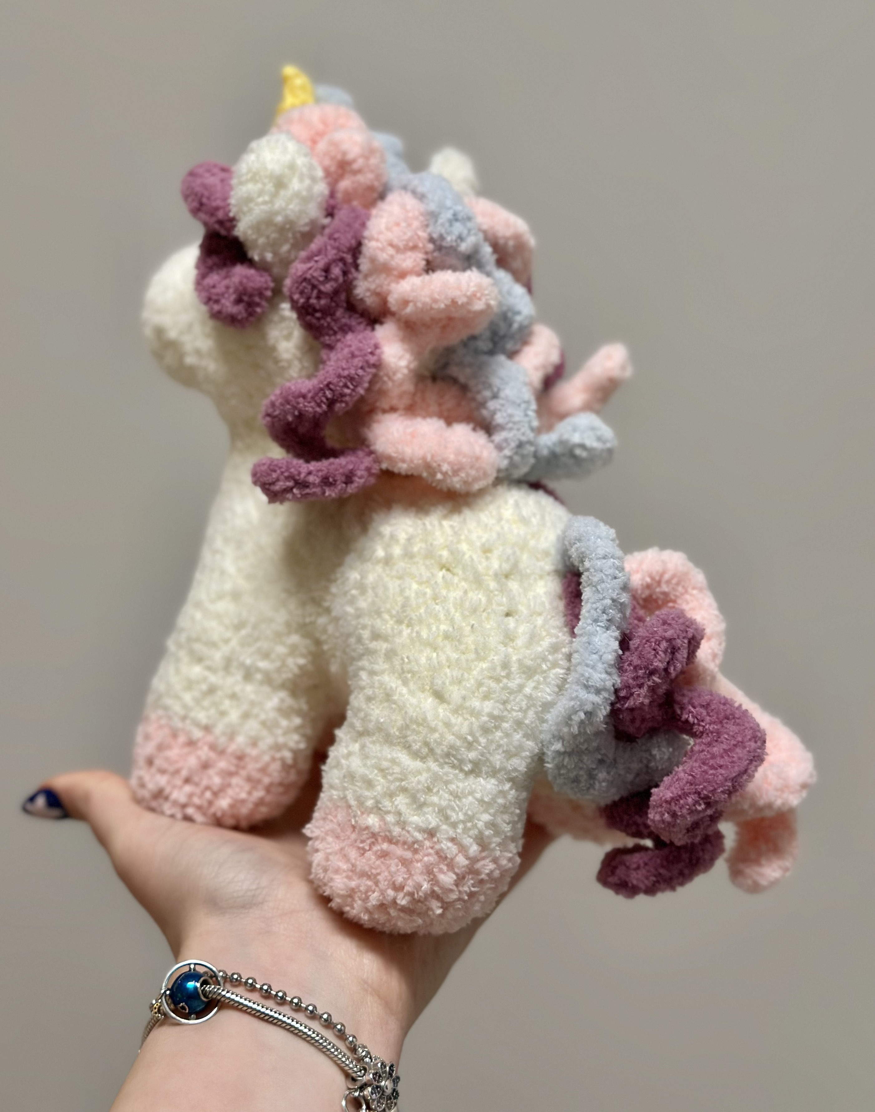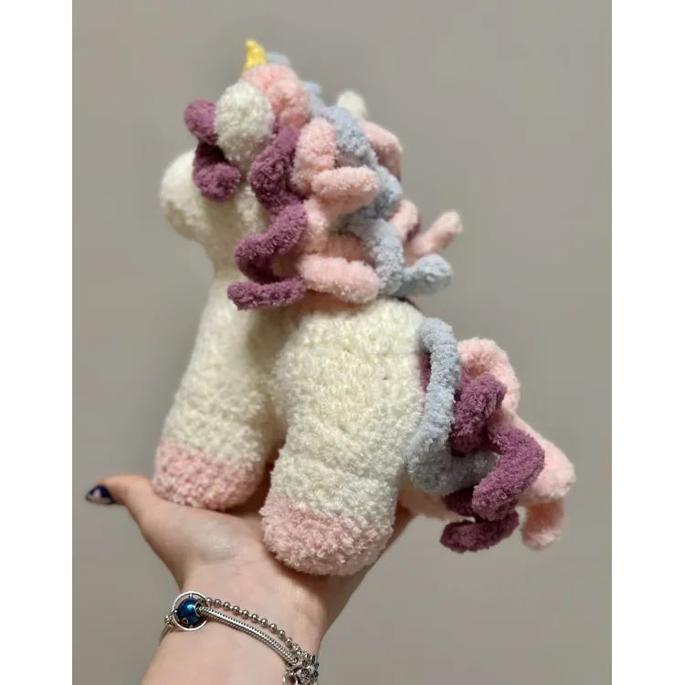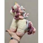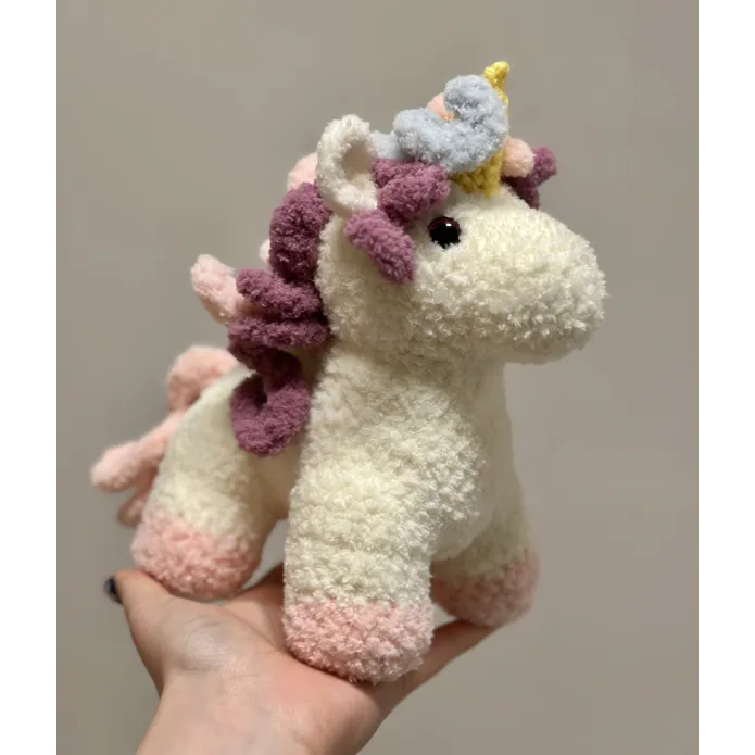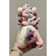 Plușul este croșetat manual din fire moi și pufoase (Alize softy)