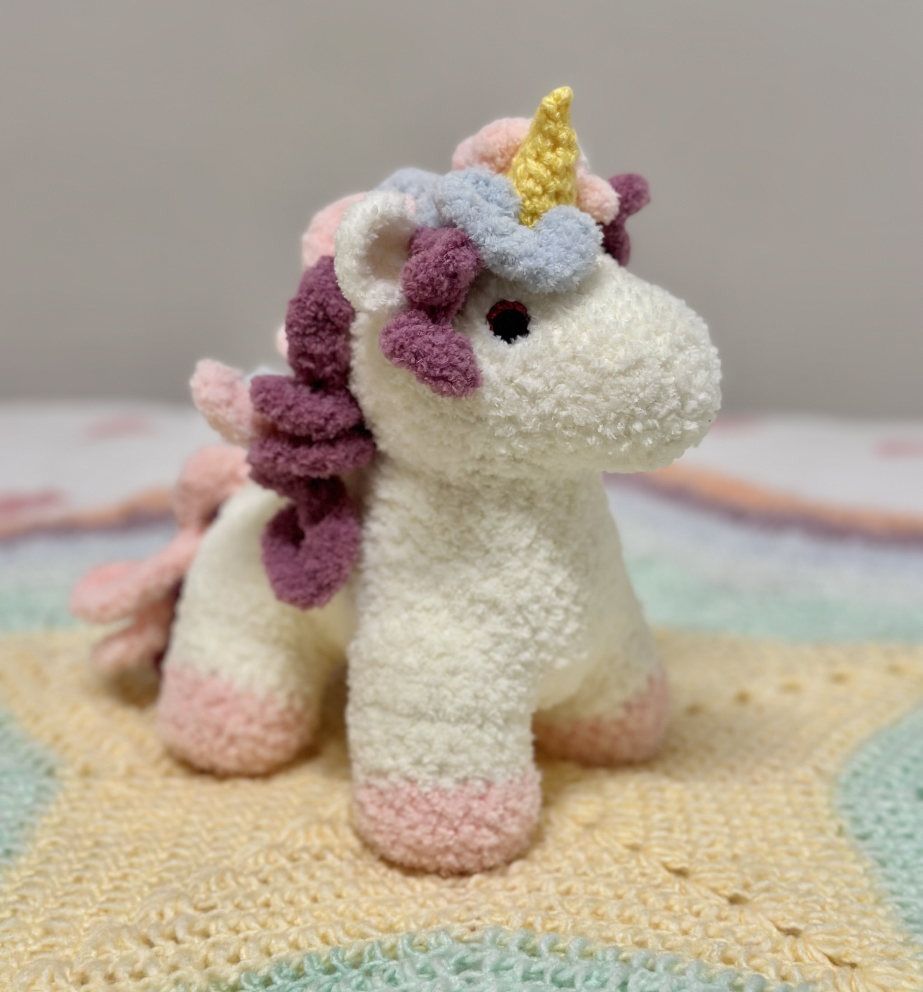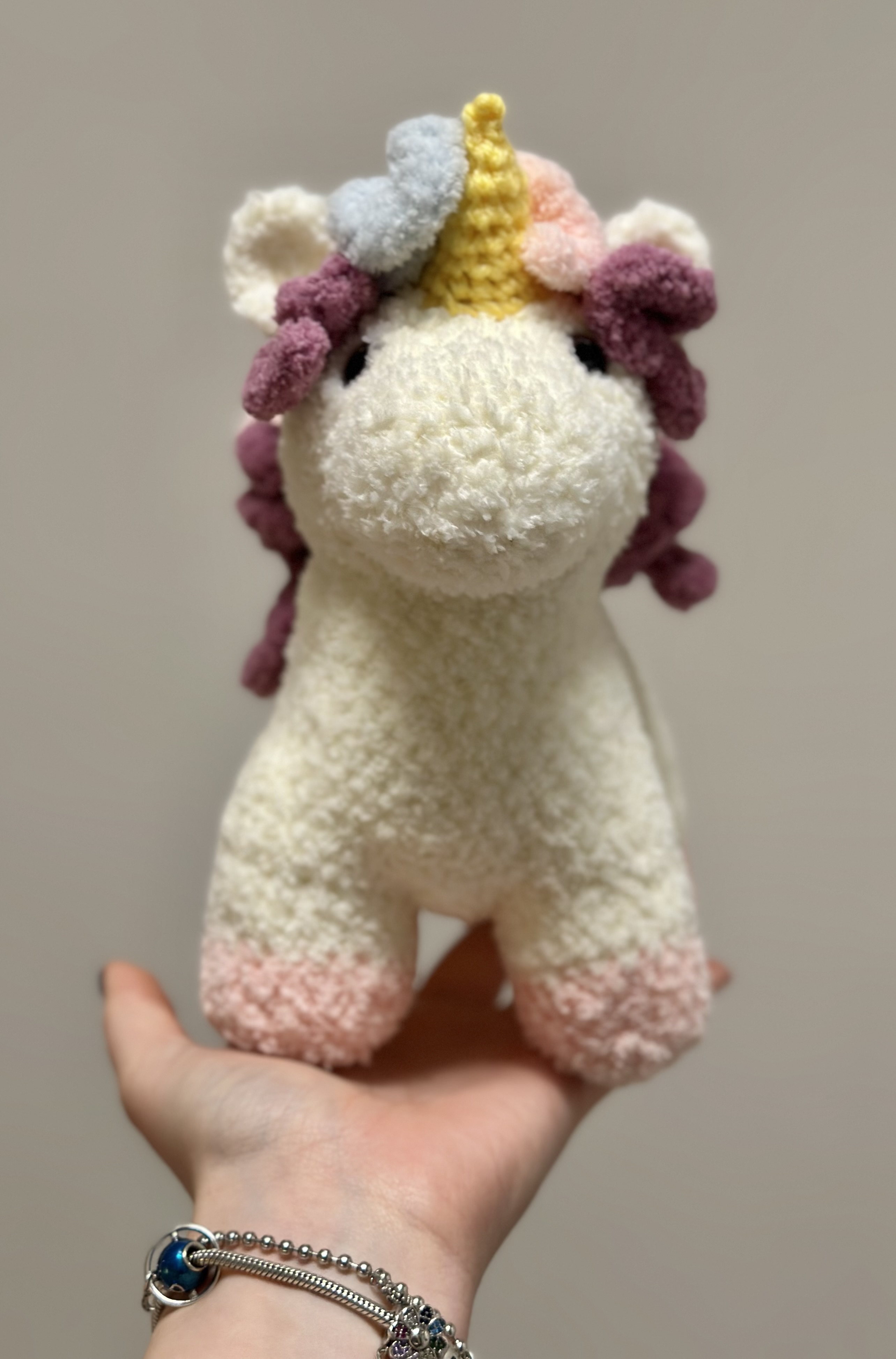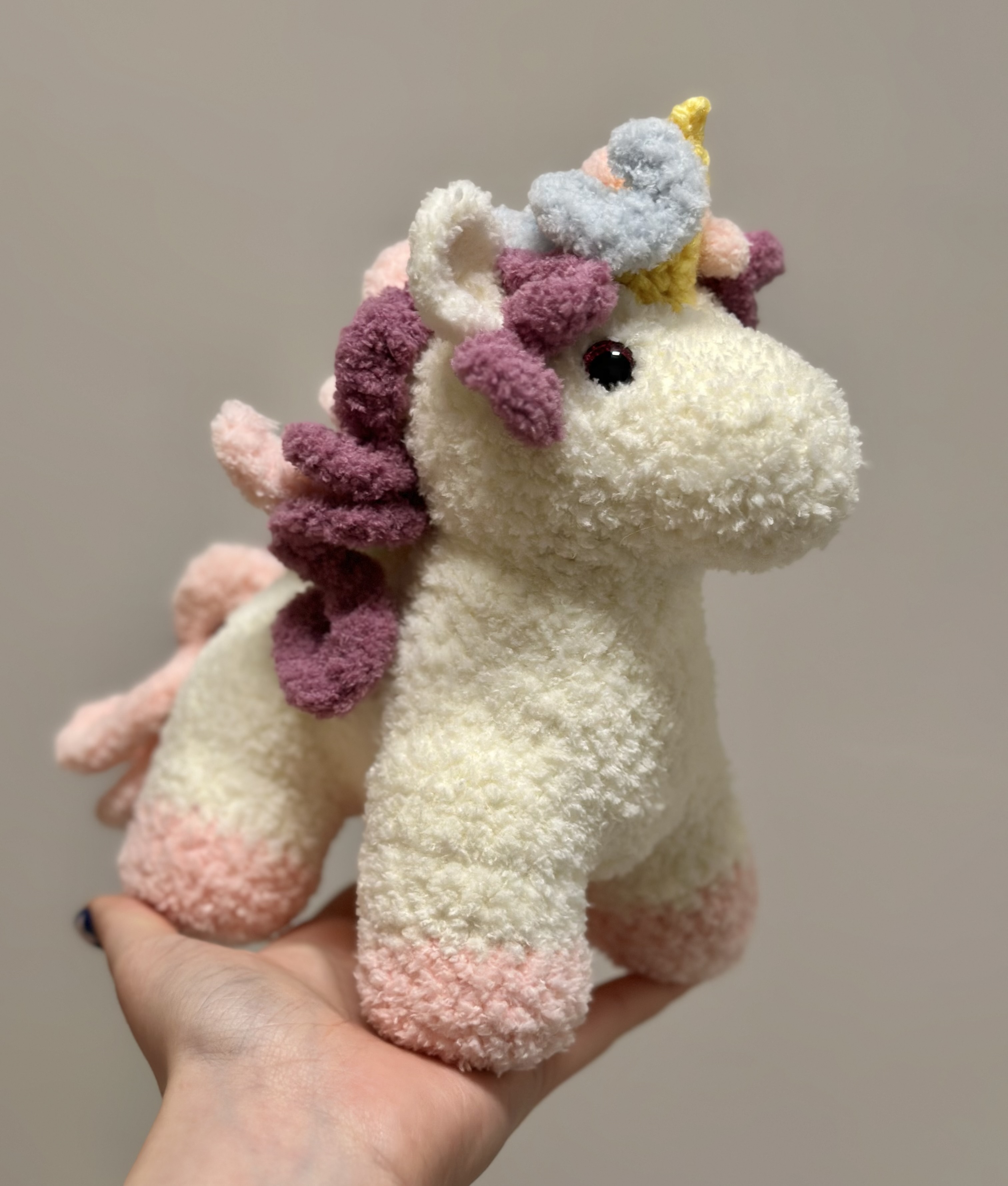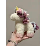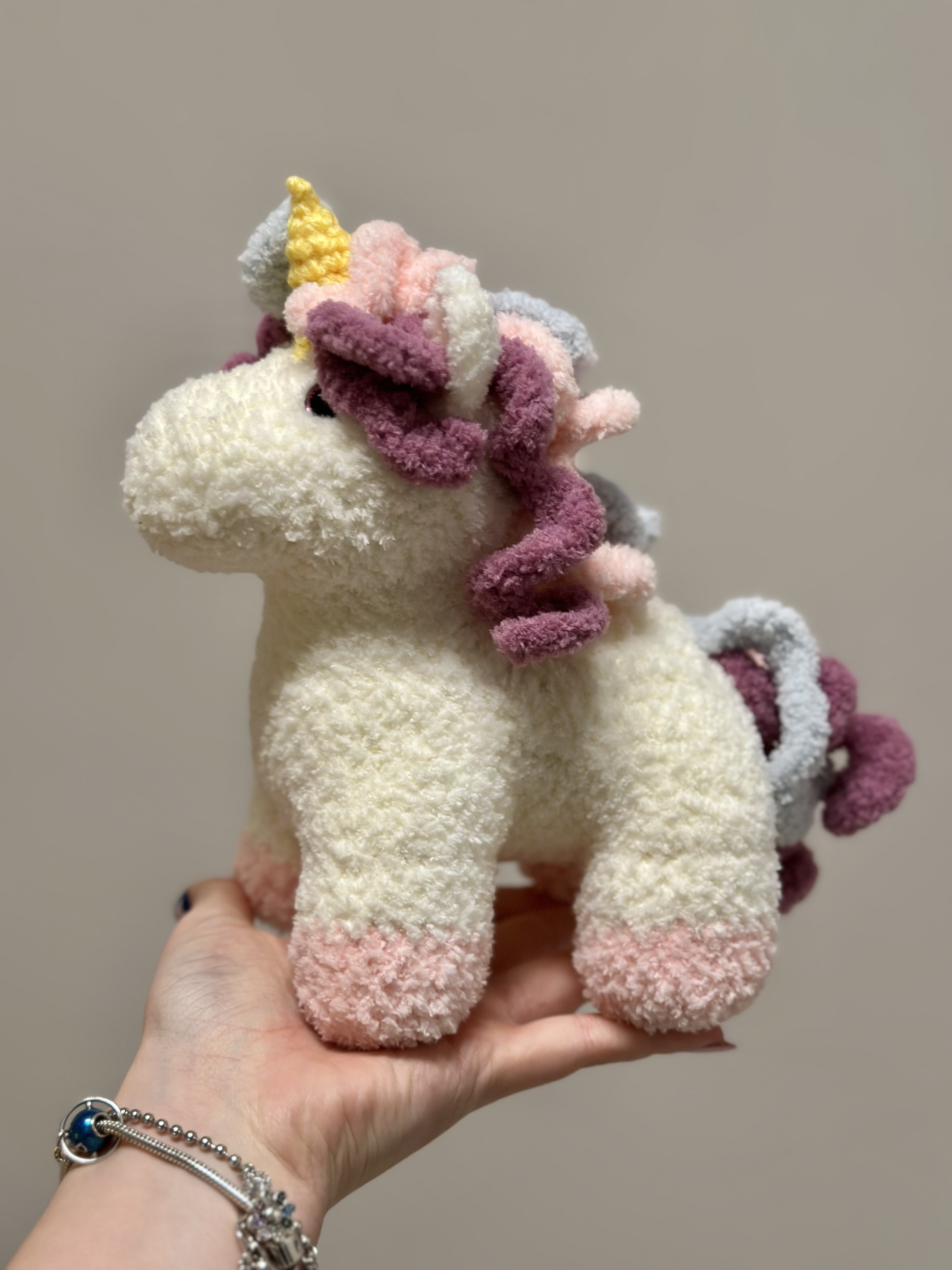 Plușul este croșetat manual din fire moi și pufoase (Alize softy)
