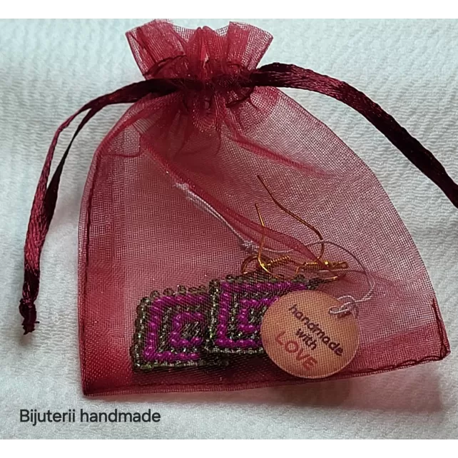- Săculeț din organza: Cerceii sunt livrați într-un săculeț elegant din organza roșie, care adaugă un plus de valoare și face produsul ideal pentru a fi oferit cadou.