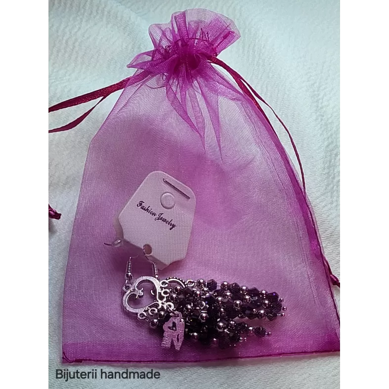 Ambalați într-un săculeț delicat din organza roz, acești cercei sunt o alegere perfectă pentru a oferi un cadou special sau pentru a completa o ținută elegantă. Fiecare pereche este lucrată manual, ceea ce garantează unicitatea și calitatea superioară.