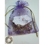 Setul vine într-un săculeț delicat din organza, decorat cu stelute aurii, perfect pentru a fi oferit cadou unei persoane dragi.