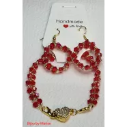 Set Bijuterii Handmade Unicat – Brățară și Cercei cu Cristale Roșii și Accente Aurii